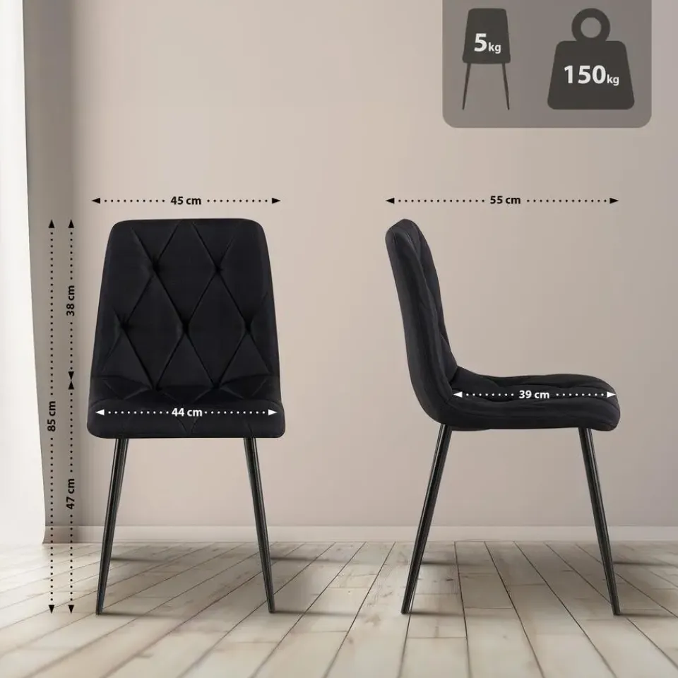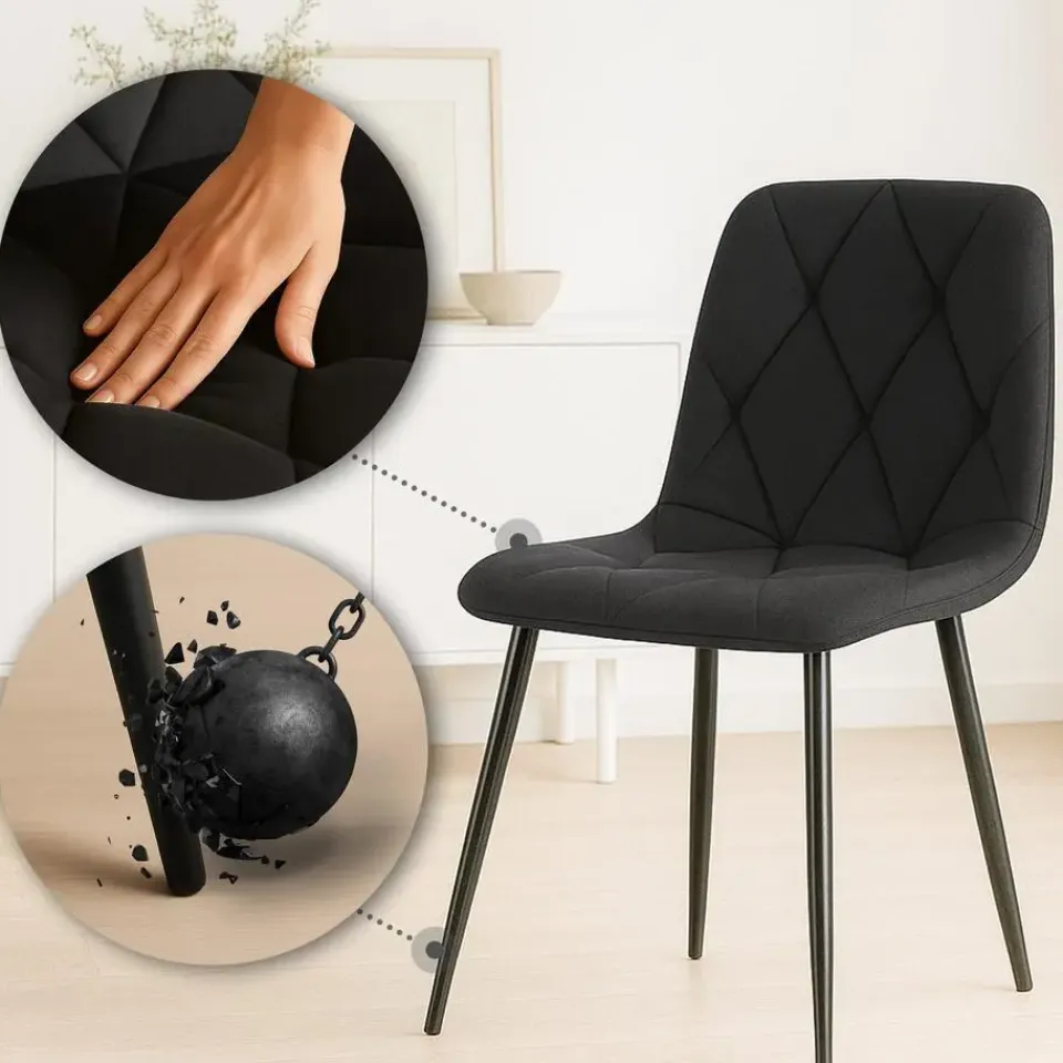 De comfortabele bekleding over de zitting en rugleuning is cruciaal voor een comfortabele zit. Zowel de zitschaal als de rugleuning zijn volledig bekleed met een gemakkelijk te onderhouden fluwelen hoes. Het chique doorgestikte patroon zorgt voor een opvallend effect.