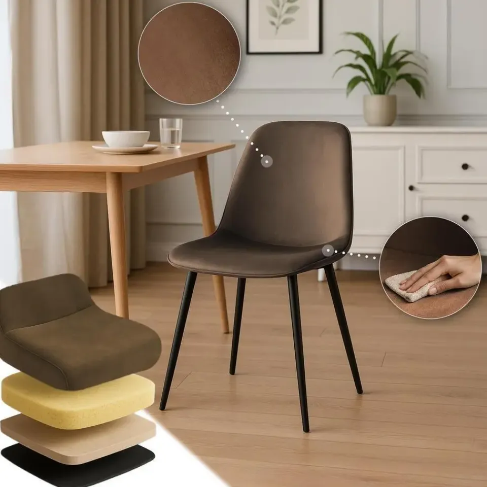 De eetkamerstoel Maryam combineert hoog zitcomfort met een modern en tijdloos design. Perfect voor uw eettafel, keuken, woonkamer, maar ook voor andere toepassingen is deze gestoffeerde stoel een uitstekende keuze.