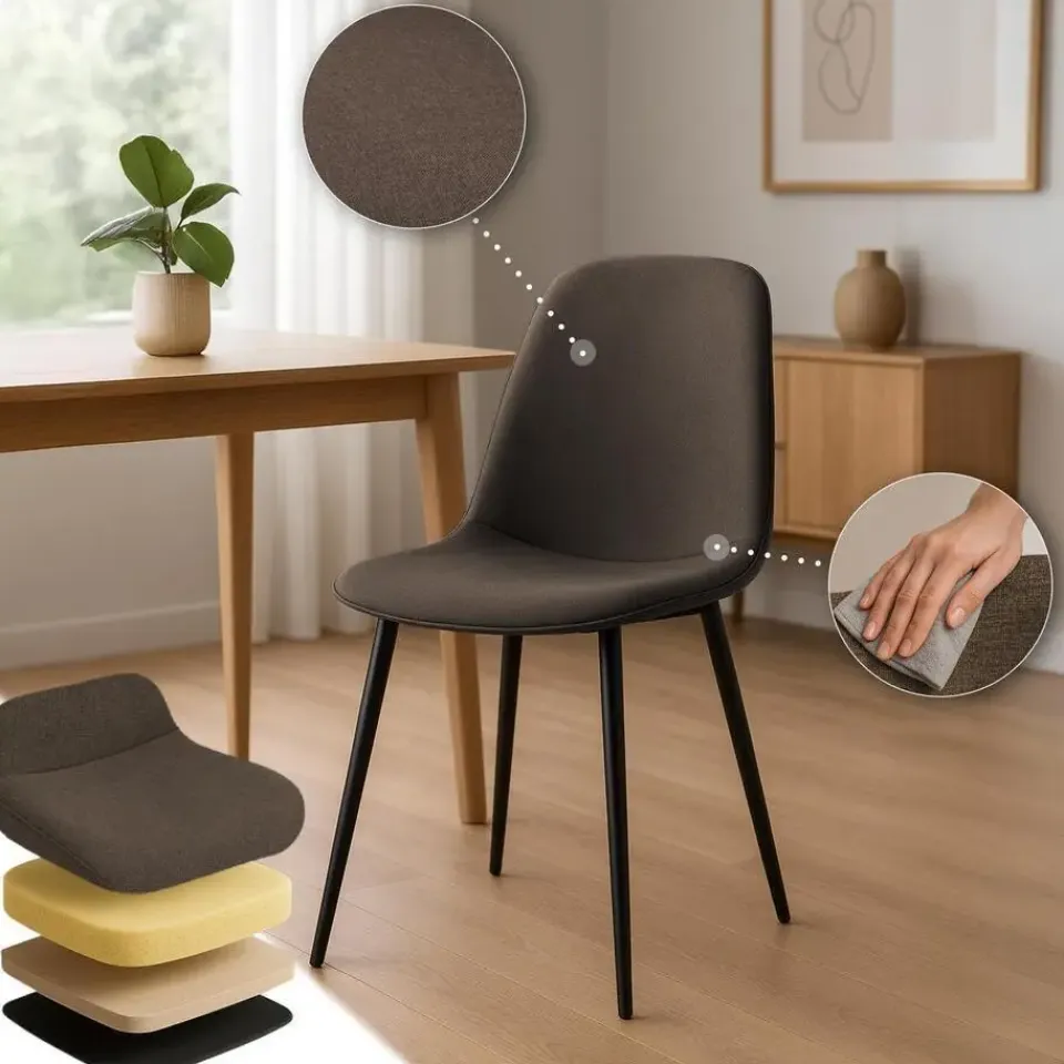 De eetkamerstoel Maryam combineert hoog zitcomfort met een modern en tijdloos design. Perfect voor uw eettafel, keuken, woonkamer, maar ook voor andere toepassingen is deze gestoffeerde stoel een uitstekende keuze.