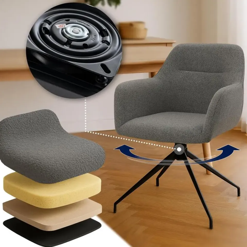 Een hoogtepunt van het model Merlinda is de 360° draaifunctie, die niet alleen flexibiliteit biedt maar ook een vleugje luxe in de eetkamer. De stoel wordt gedeeltelijk gemonteerd geleverd en is in een mum van tijd klaar voor gebruik.