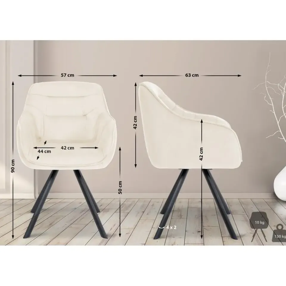 De stoel wordt ondersteund door een modern metalen frame met 4 poten en past zeer goed in elke omgeving. Om de vloer te beschermen tegen lelijke krassen zijn er vloerbeschermers aan de poten bevestigd. Deze stoel combineert niet alleen esthetisch design met uitzonderlijk comfort, maar toont ook praktische aandacht voor de levensduur van uw meubilair.