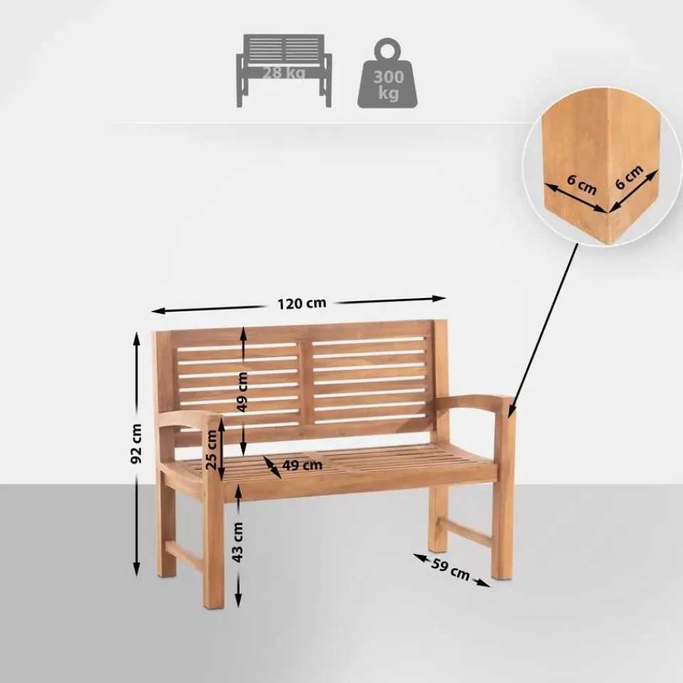 Deze combinatie is verkrijgbaar met verschillende teakbanken uit ons assortiment.