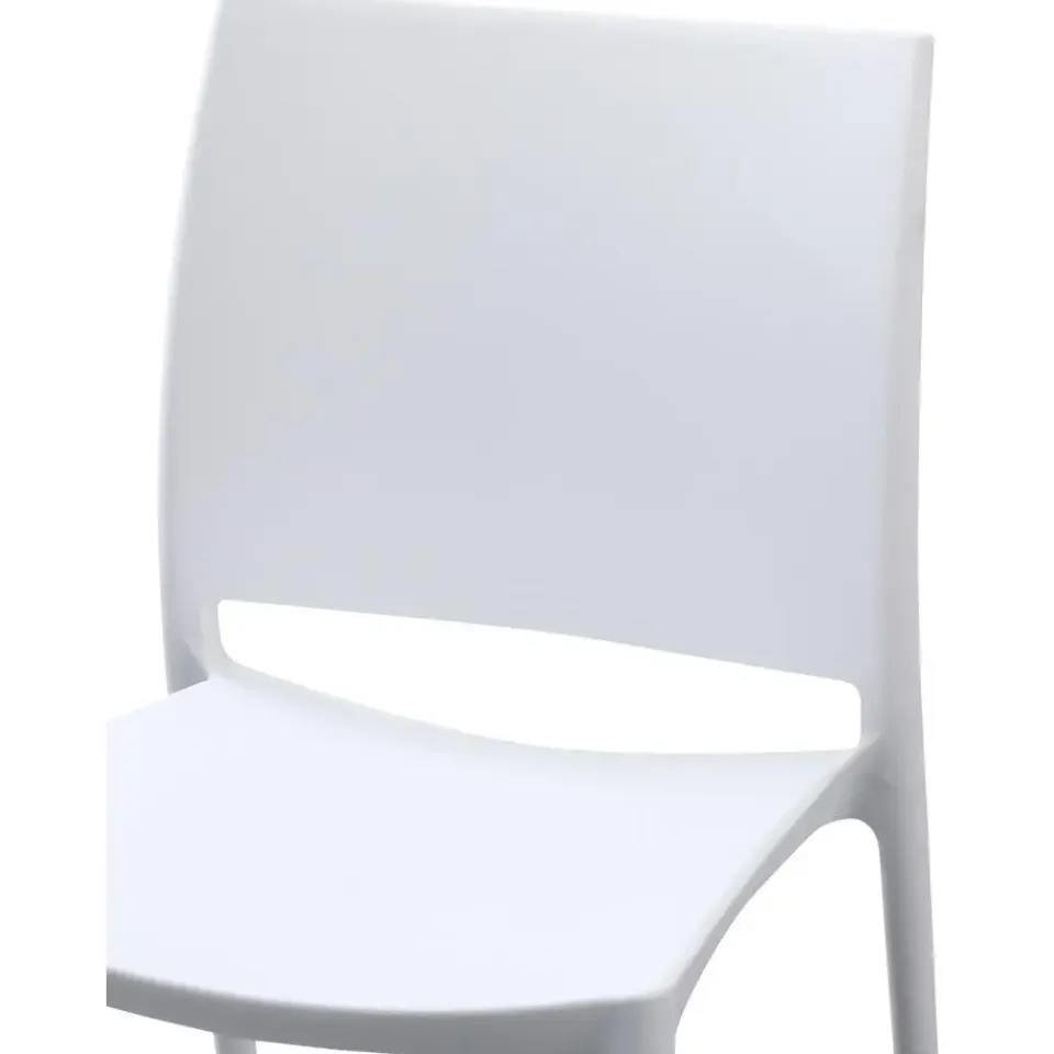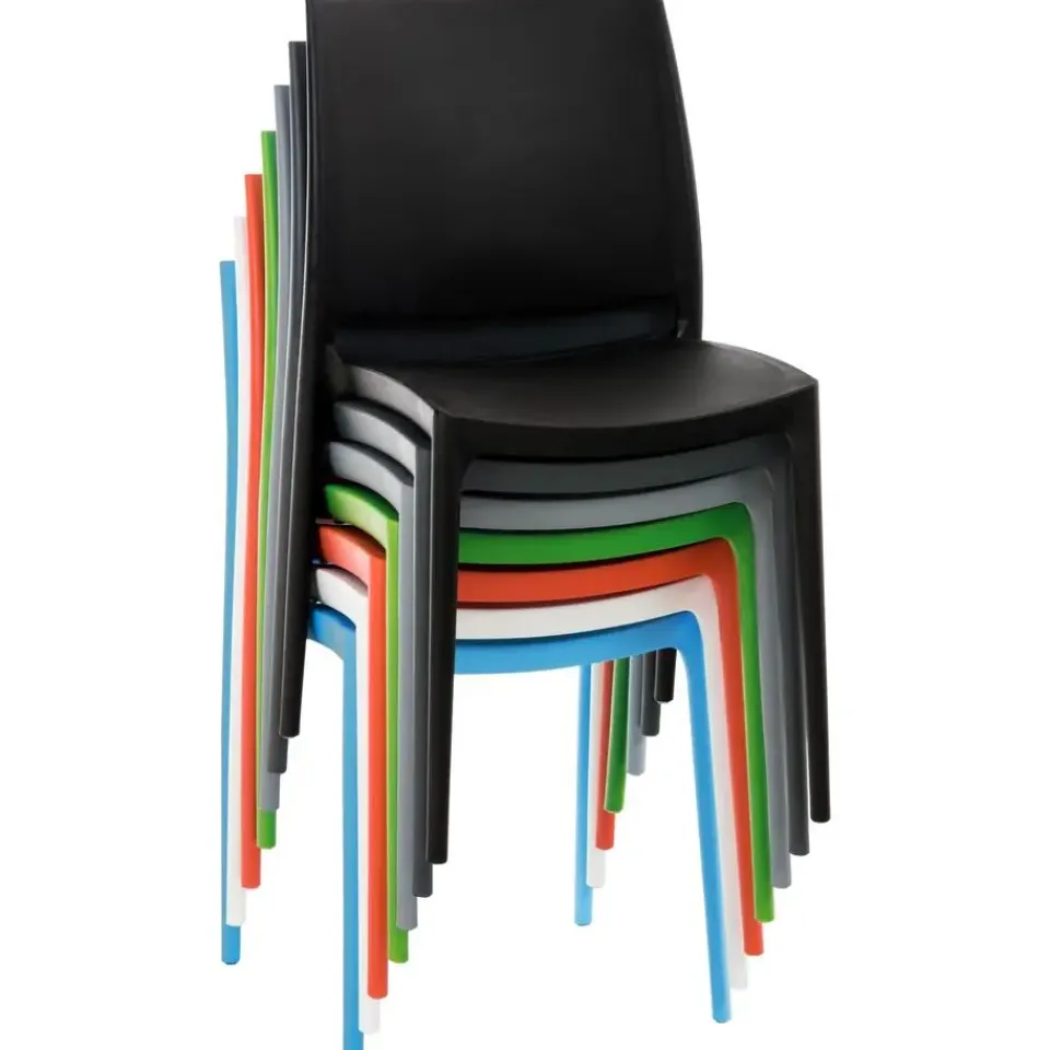 Het stapelbare ontwerp zorgt voor ruimtebesparend opbergen. Dankzij de ergonomisch gebogen rugleuning kun je zelfs zonder bekleding genieten van een hoog zitcomfort. De stapelstoel heeft een eenvoudige en strakke uitstraling. Hierdoor past hij harmonieus in elke omgeving.