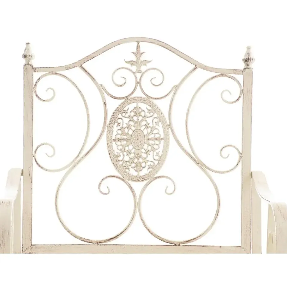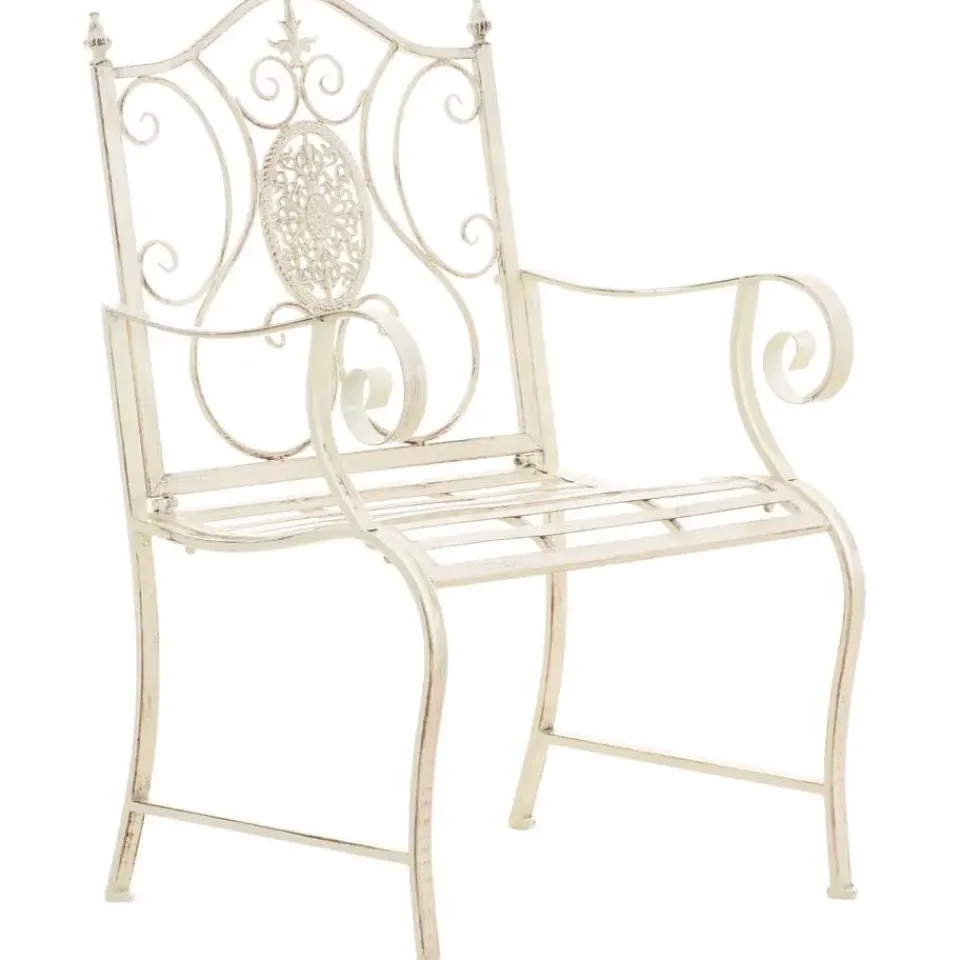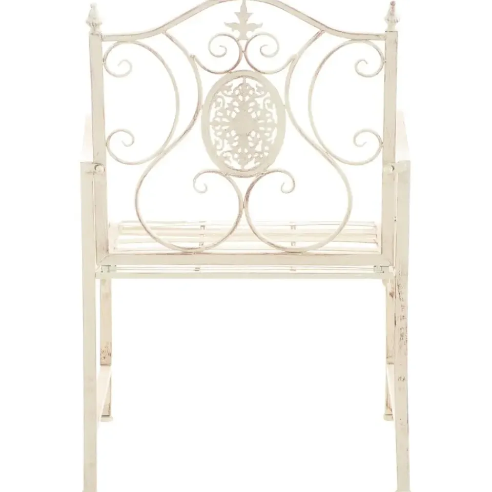 Gemaakt van gelakt ijzer is de tuinstoel beschermd tegen de elementen, waardoor hij weerbestendig is. De ijzeren stoel is gemakkelijk te onderhouden en kan worden schoongemaakt met een vochtige doek en een mild schoonmaakmiddel. Het oppervlak van de tuinstoel is afgewerkt met een mooie patina die past bij de aantrekkelijke decoraties.