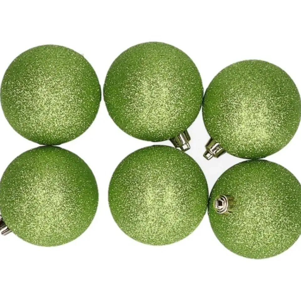 Glitter kerstballen in de kleur appel groen. Voeg een vleugje glamour toe aan je kerstboom met deze set van 6x stuks glitter kerstballen. Met een diameter van 8 cm zijn deze onbreekbare kerstballen perfect voor het creeren van een sfeervolle en feestelijke uitstraling. Gemaakt van kunststof, zijn ze lichtgewicht en gemakkelijk te hangen.