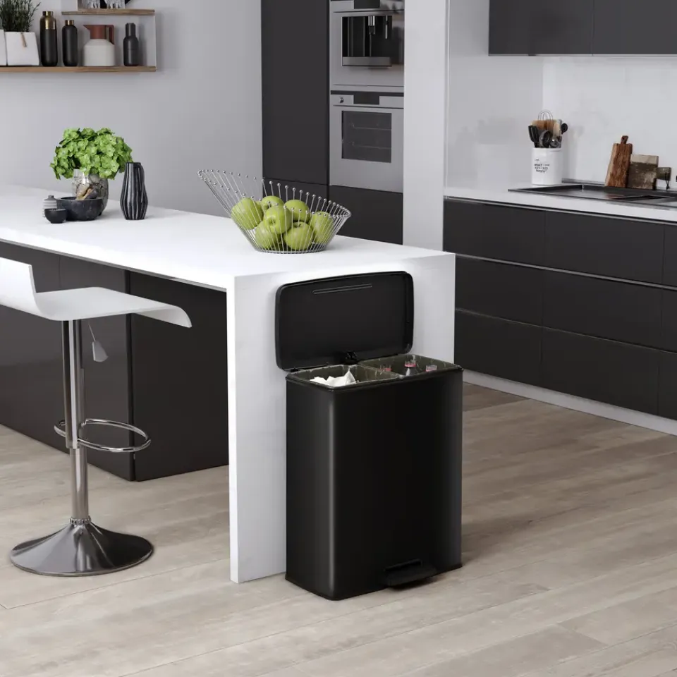 Beschikbaar in een brede range aan maten en vormen is er voor elke gezinsgrootte en persoonlijke smaak wel iets. Deze rechthoekige prullenbak is een comfortabel recycling systeem. Het heeft twee binnenemmers met elk een inhoud van 26 liter. Daarnaast kan de bak ook als 65L afvalbak dienen wanneer de twee binnenemmers verwijderd worden. Naast dat deze pedaalemmer gemaakt is van gerecycled kunststof is hij niet enkel duurzaam, maar ook erg functioneel met zijn soft close mechanisme waardoor het deksel geruisloos sluit en een comfortabel pedaal, waardoor de prullenbak hygienisch en gemakkelijk in gebruik is. Deze prullenbak komt met een garantie van 5 jaar die staat voor kwaliteit en duurzaamheid.
