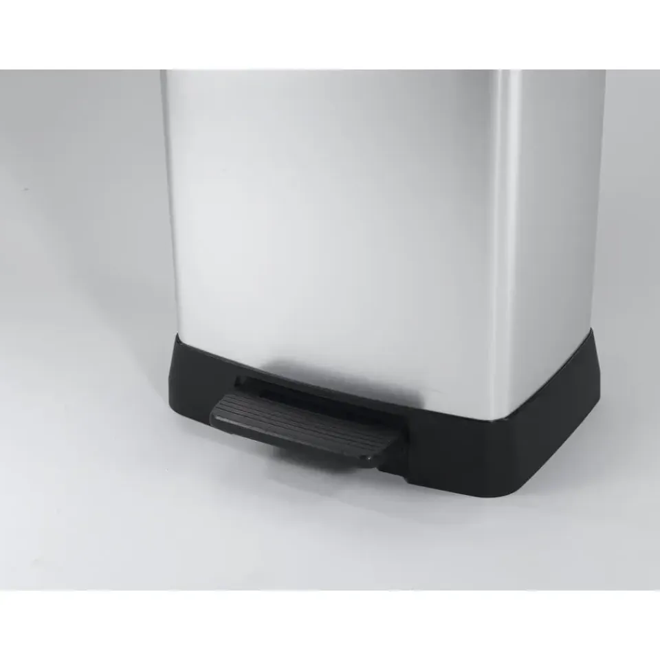 De Curver Decobin Afvalbak – Rechthoekig – 50L heeft de uitstraling van metaal en de voordelen van kunststof waardoor hij niet roest, niet deukt, licht is van gewicht, eenvoudig te reinigen en vingerafdrukken niet zichtbaar zijn. Deze vuilbak is voorzien van een breed en comfortabel pedaal en een flexibele rand in het deksel waardoor nare geurtjes niet kunnen ontsnappen. Verder heeft het deksel een soft-close mechanisme waardoor het geruisloos sluit. De bak heeft ook een anti-vacuumsysteem waardoor het eenvoudiger wordt om de zak te verwijderen en de vuilniszak wordt op zijn plaats gehouden door twee beugels. Door deze beugels is de vuilniszak van buitenaf niet zichtbaar. Daarnaast is deze afvalbak ook een duurzame oplossing doordat hij is gemaakt van 80% gerecycled kunststof. Kortom een product dat onmisbaar is in jouw huishouden.