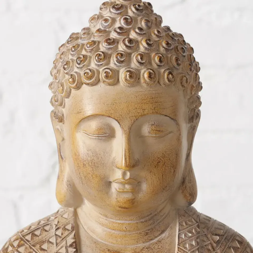 Boeddha decoratie beeld Legolas, zittend in meditatie houding, voor huis of tuin gemaakt van polyresin kunststeen en kunststof met afmetingen van ongeveer 19 x 13 x 30 cm. Geschikt voor binnen en buiten. Kleur: antiek beige/oud goud. Dit boeddha beeld is past goed in elke tuin/interieur en straalt rust en beheersing uit. U wordt er rustig/relaxed van als u er naar kijkt. Boeddha woon/tuinaccessoires beelden zijn ook zeer geschikt als cadeau. Gewicht: 0.7 kilo.