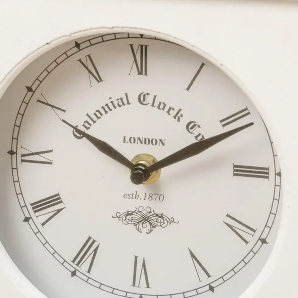 Tafelklok staand model St James gemaakt van hout en glas. Kleur: antiek wit. Afmetingen ongeveer: 23 x 21 cm. Aantal benodigde batterijen: 1x AA, niet inbegrepen. Staande klokken voor in de woonkamer, kantoor of slaapkamer. Stijlvolle historische uitstraling. Een absolute verrijking van uw kantoor of huis interieur.