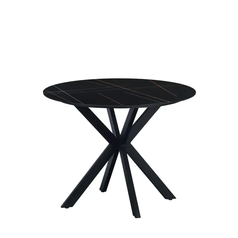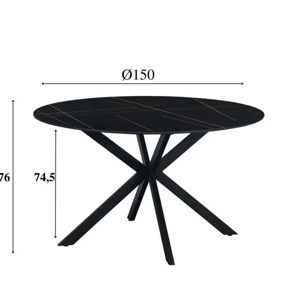 De spinpoot van eettafel Yuna is gemaakt van zwart gepoedercoat metaal. De tafel is gemakkelijk te monteren.