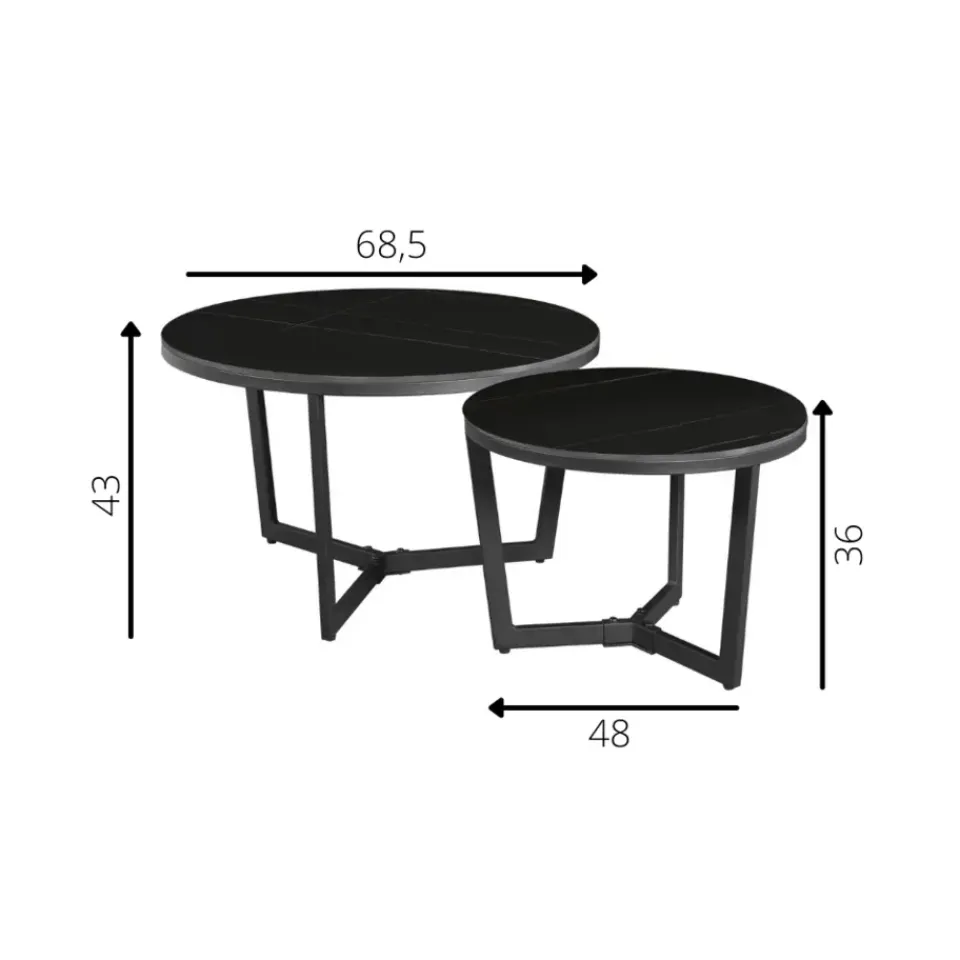 De Brady bevat een robuust framewerk gemaakt van zwart gepoedercoat metaal. De tafels worden niet gemonteerd geleverd. Dit model dient middels een paar schroeven in elkaar gezet te worden.