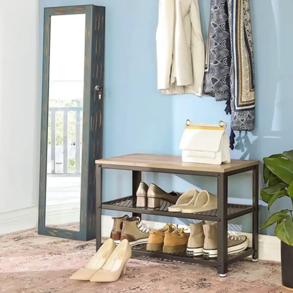- Duurzaam ontwerp: gemaakt van zeer sterk spaanplaat en metaal, kan deze stevige schoenenbank tot 90 kg dragen. Waarom neem je niet even plaats om je schoenen aan te trekken of op je vriend of vriendin te