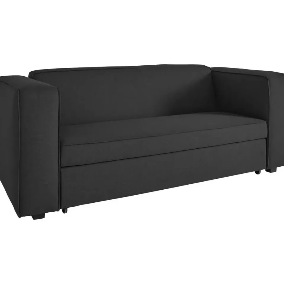 De matras heeft een afmeting van ongeveer 160 × 202 cm en rolt soepel uit onder de zitting, waardoor het opzetten snel en eenvoudig is. Deze slaapbank is perfect voor kleine ruimtes, logeerkamers of voor wie op zoek is naar een functioneel en stijlvol meubelstuk. Het biedt comfort en gemak in één slim ontwerp.