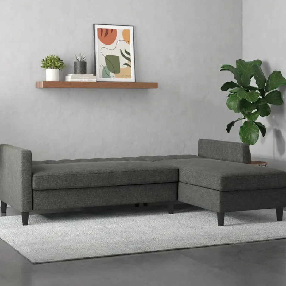 Deze hoek slaapbank biedt groot zitcomfort. Het kan moeiteloos worden omgezet van een bank naar een bed. De chaise is omkeerbaar en kan links of rechts worden gemonteerd. De slaapbank heeft een hoogwaardige en elegante linnenlook bekleding. Het heeft extra opbergruimte voor dekens en kussens. De maximale draagcapaciteit van elke zitplaats is 135 kg. De slaapbank kan eenvoudig worden gemonteerd met de meegeleverde hardwaretas. Met zijn tijdloze design is deze slaapbank gemakkelijk te combineren met alle stijlen van uw kamer.