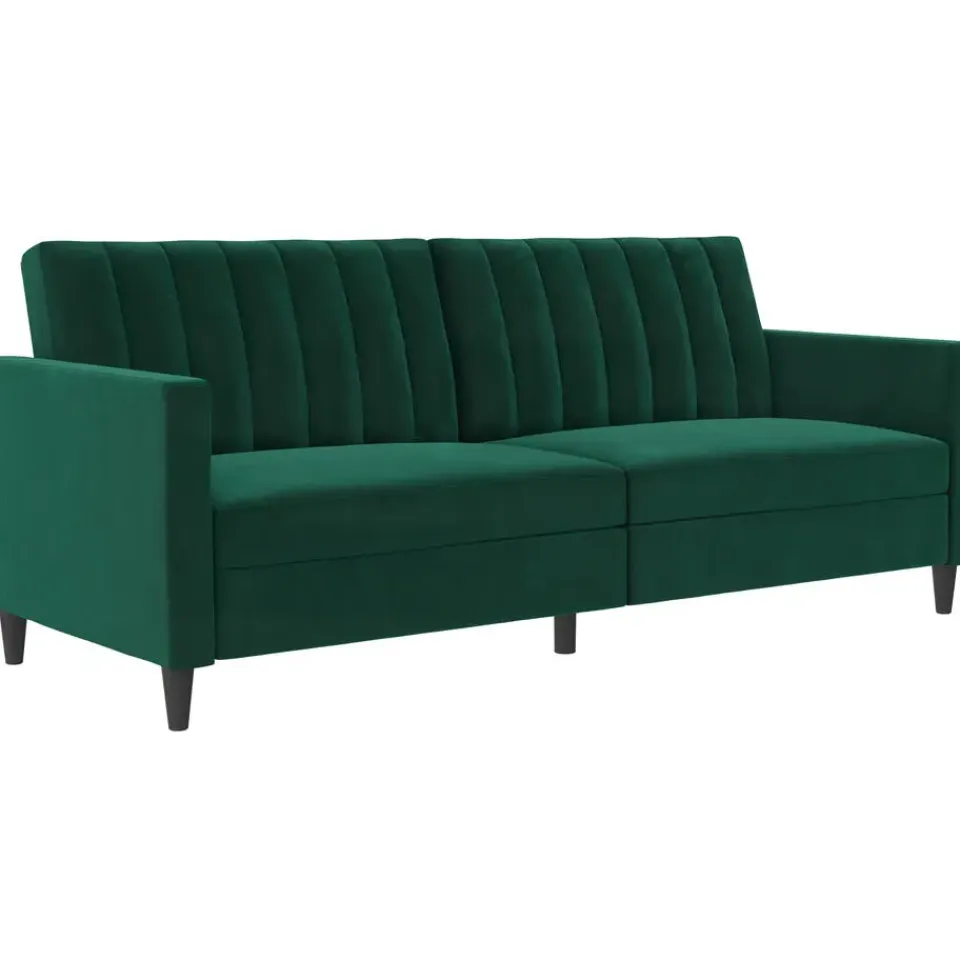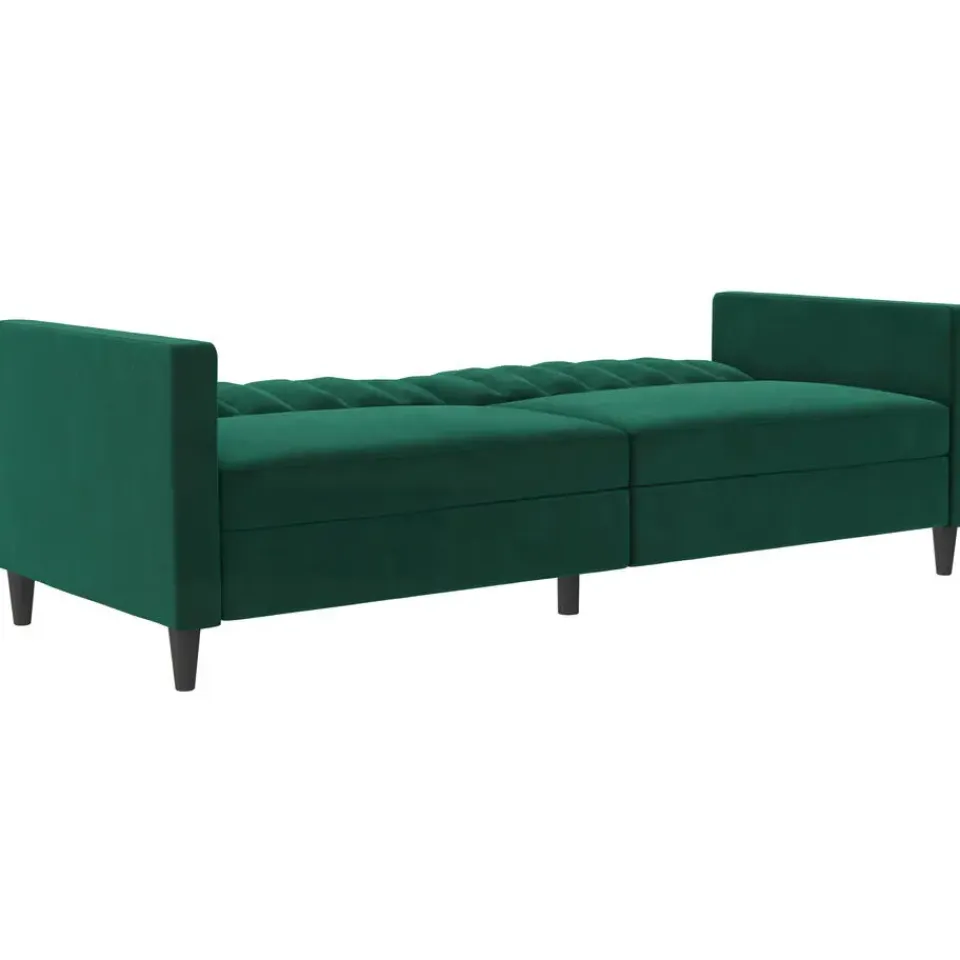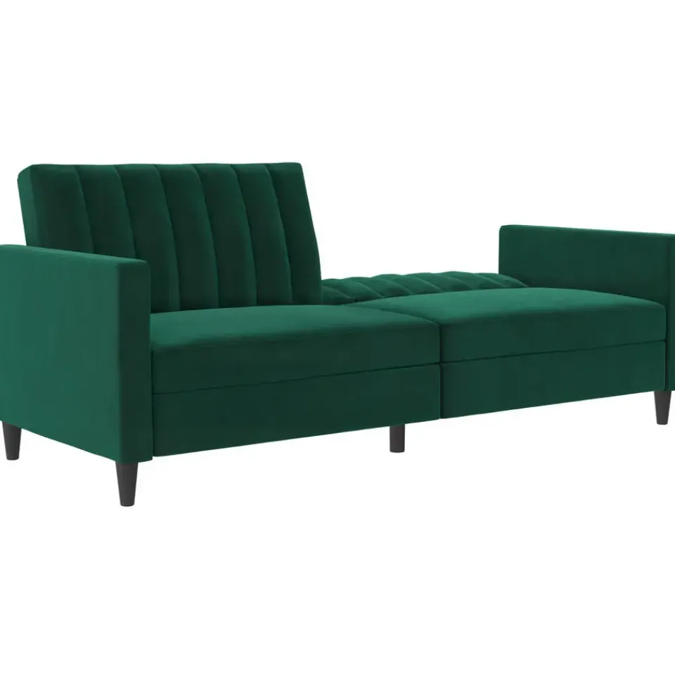 Deze slaapbank heeft een moderne stijl. Het is gemaakt van gefabriceerd hout en een fluwelen hoes. De vulling is gevuld met schuim voor meer comfort. Het heeft een uitbreidbaar slaapoppervlak en is dus zowel een slaap- als rustzone. De slaapbank is handmatig verstelbaar.