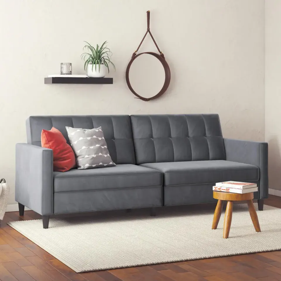 Deze bank heeft een strak, modern silhouet dat je woonkamer zeker in een moderne stijl zal verankeren. Hij is gemaakt van gefabriceerd hout en hoogwaardige bekledingsmaterialen. De bekleding is gevuld met schuim voor precies de juiste hoeveelheid ondersteuning als je zit voor een extra vleugje comfort. De comfortabele en stijlvolle bank is ideaal voor een filmavond met vrienden of om lekker languit van te genieten in je eentje!