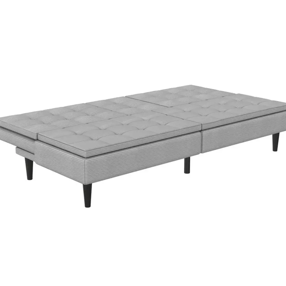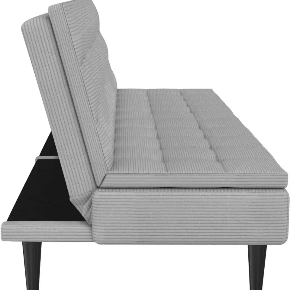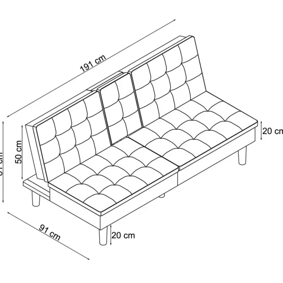 Ontworpen met comfort en functionaliteit in gedachten is deze slaapbank perfect voor elke woonruimte. Dankzij de handmatige versteloptie verandert hij eenvoudig van een gezellige bank in een ruime ligplek. Het ligoppervlak meet 191 cm in lengte en 110 cm in breedte en biedt voldoende ruimte om te ontspannen. Met een lighoogte van 40 cm biedt hij een comfortabele rustpositie. De stevige constructie ondersteunt een maximale belasting van 270 kg en garandeert duurzaamheid en stabiliteit. De zachte ribstof voegt warmte en stijl toe aan de kamer. Twee bekerhouders in de rugleuning zorgen voor extra gemak en maken loungen nog aangenamer.