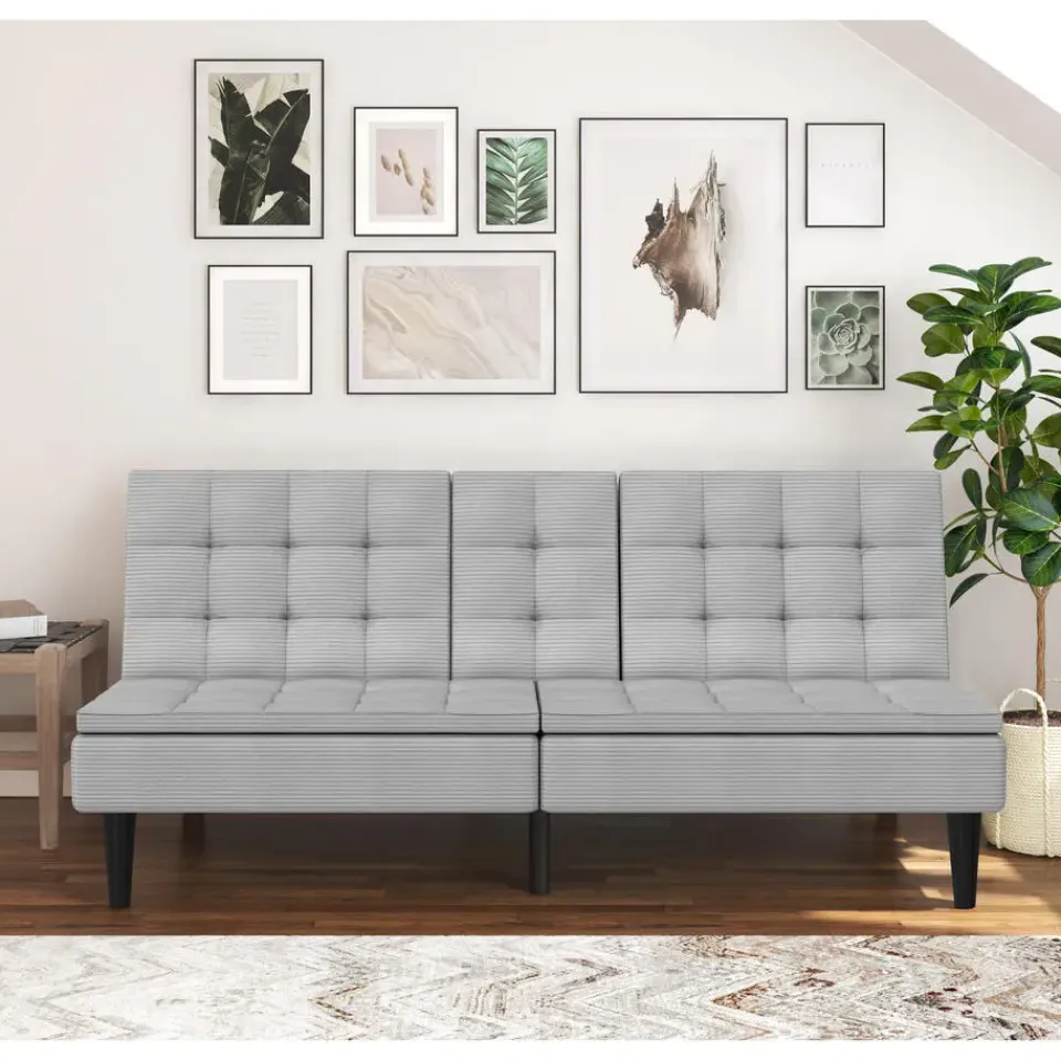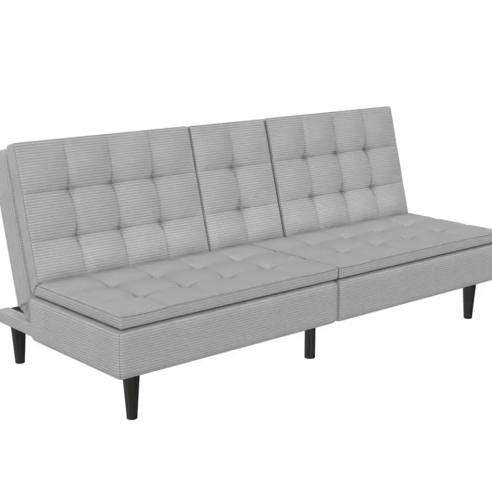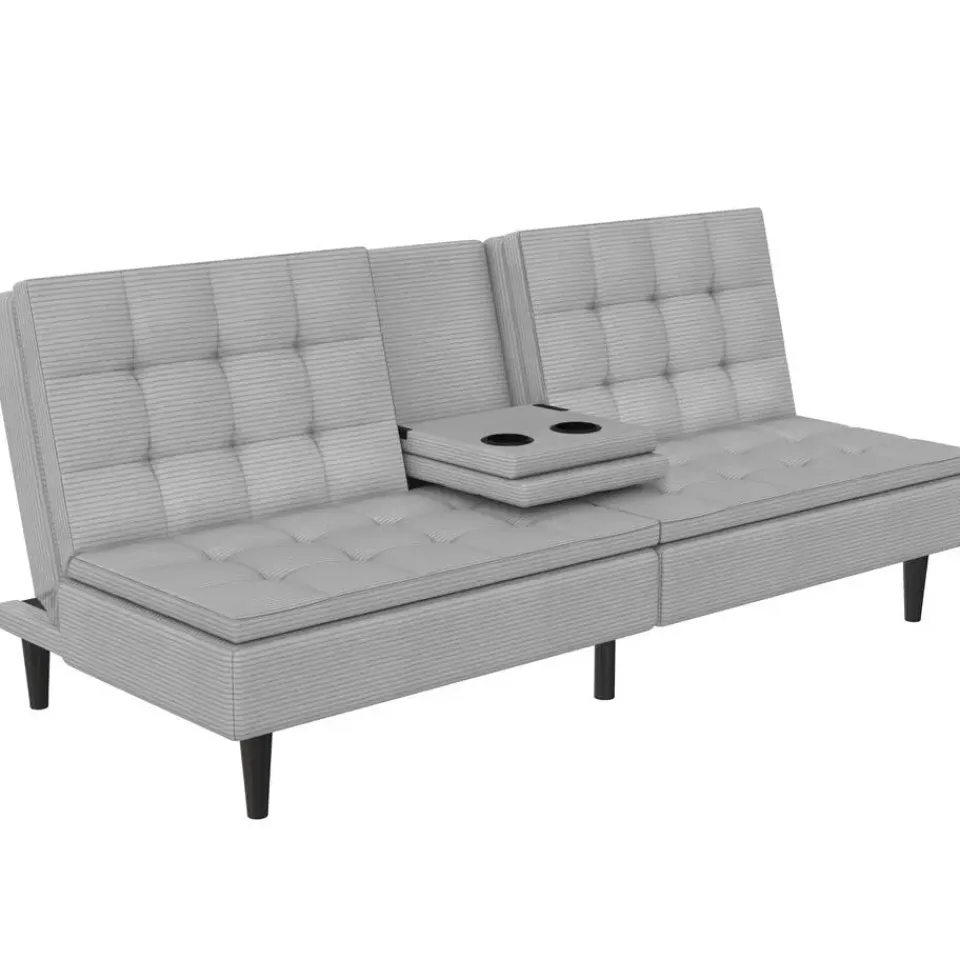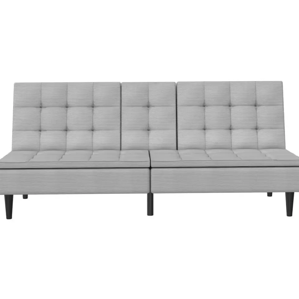 Ontworpen met comfort en functionaliteit in gedachten is deze slaapbank perfect voor elke woonruimte. Dankzij de handmatige versteloptie verandert hij eenvoudig van een gezellige bank in een ruime ligplek. Het ligoppervlak meet 191 cm in lengte en 110 cm in breedte en biedt voldoende ruimte om te ontspannen. Met een lighoogte van 40 cm biedt hij een comfortabele rustpositie. De stevige constructie ondersteunt een maximale belasting van 270 kg en garandeert duurzaamheid en stabiliteit. De zachte ribstof voegt warmte en stijl toe aan de kamer. Twee bekerhouders in de rugleuning zorgen voor extra gemak en maken loungen nog aangenamer.