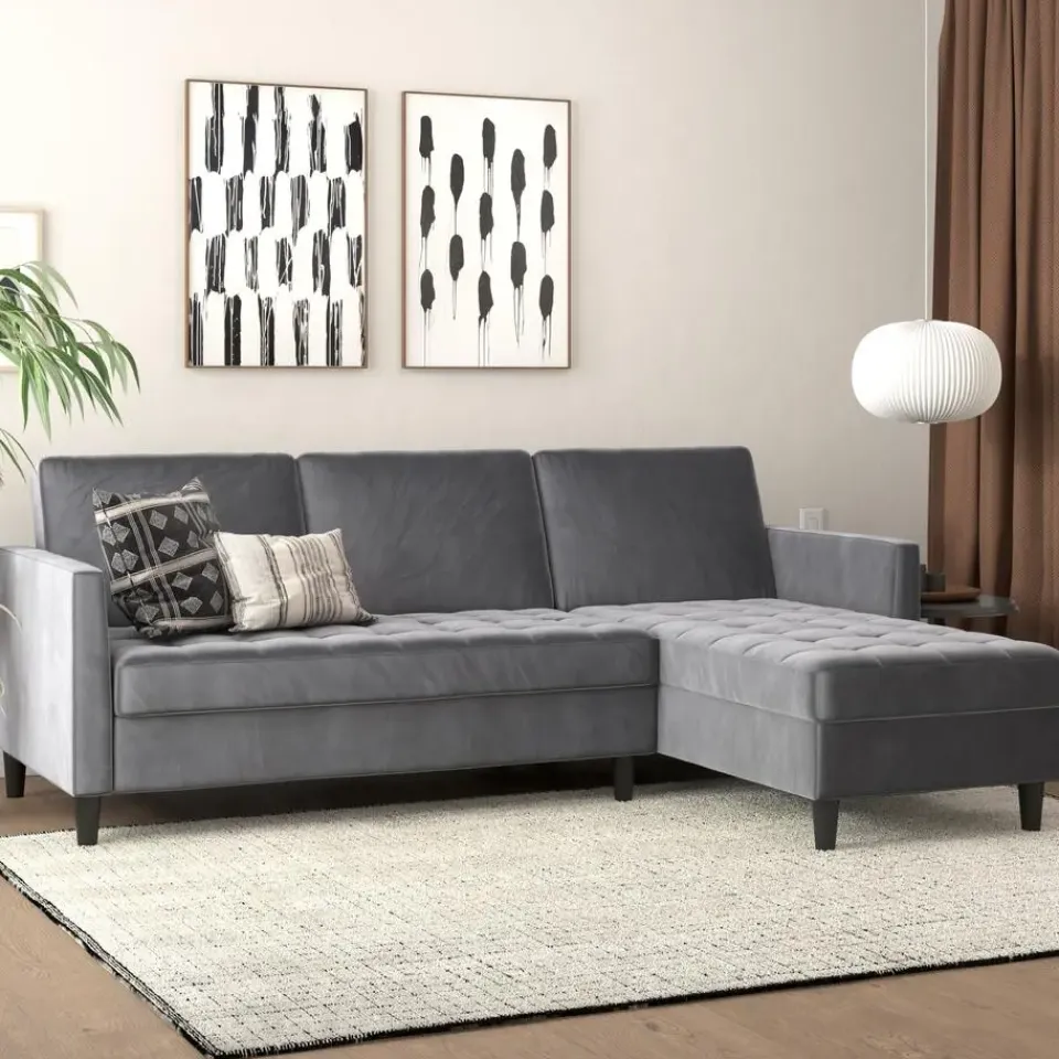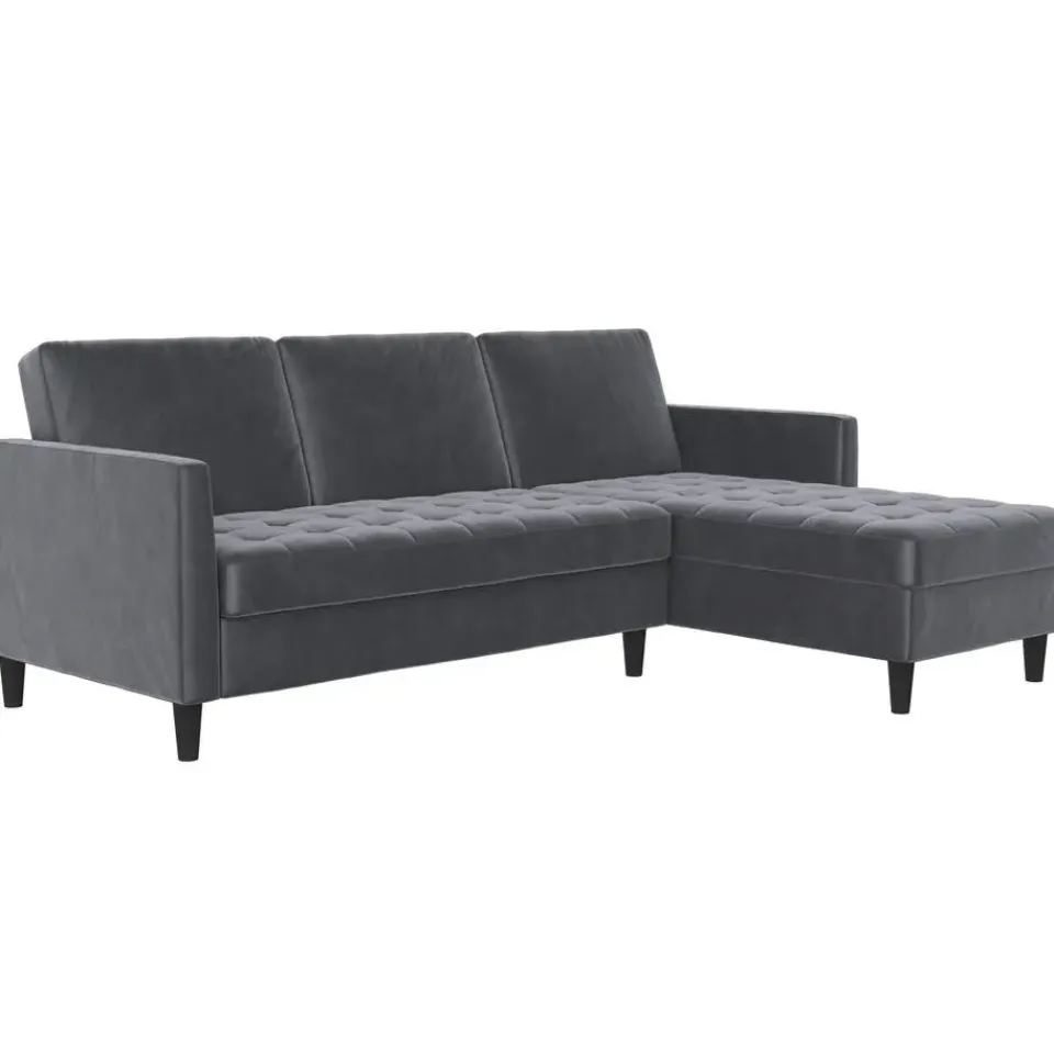 Deze slaapbank heeft een moderne stijl. Hij is gebouwd met technisch hout en hoogwaardige bekledingsmaterialen. De vulling is gevuld met schuim voor optimaal comfort. De hoekbank heeft een uitschuifbaar slaapoppervlak en kan als logeerbed worden gebruikt. Hij is handmatig verstelbaar. De chaise longue kan worden geopend voor opbergruimte.