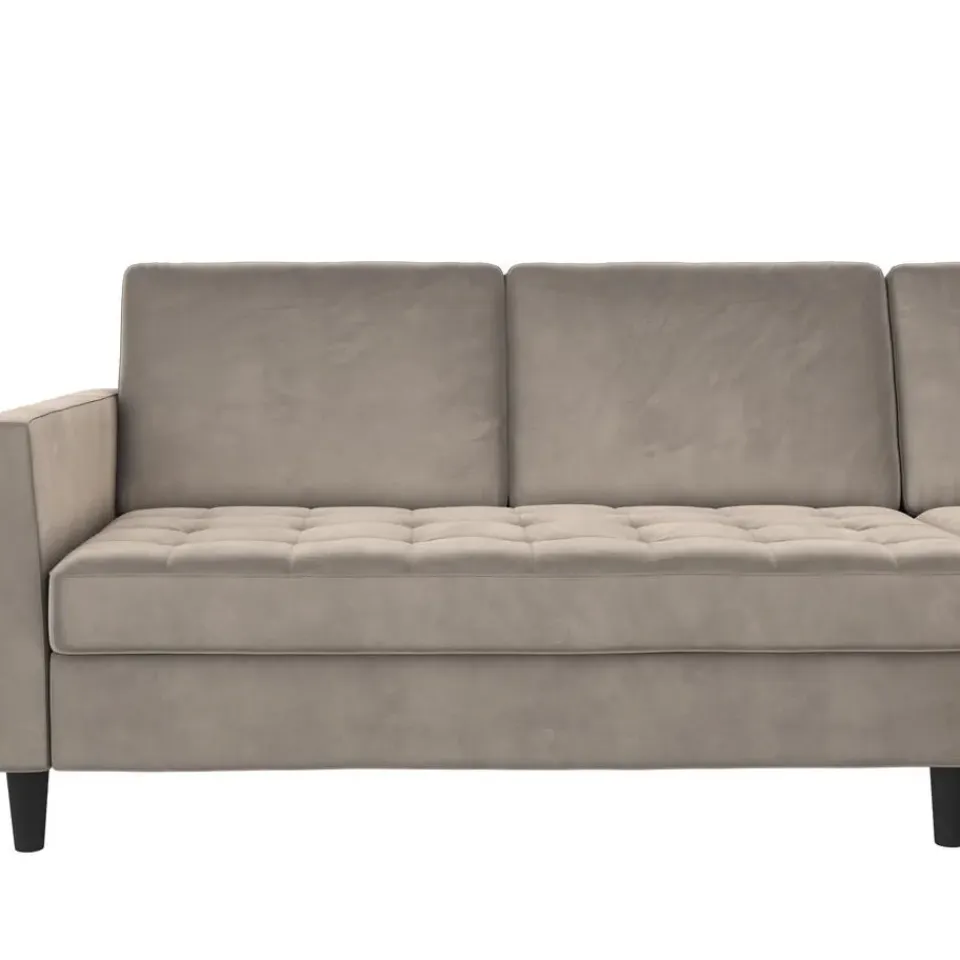 Deze slaapbank heeft een moderne stijl. Het is gemaakt van gefabriceerd hout en hoogwaardige bekledingsmaterialen. De bekleding is gevuld met schuim voor optimaal comfort. De hoekbank heeft een uitschuifbaar ligoppervlak, waardoor het geschikt is als logeerbed. Het is handmatig verstelbaar. De chaise longue kan worden geopend voor opslag.