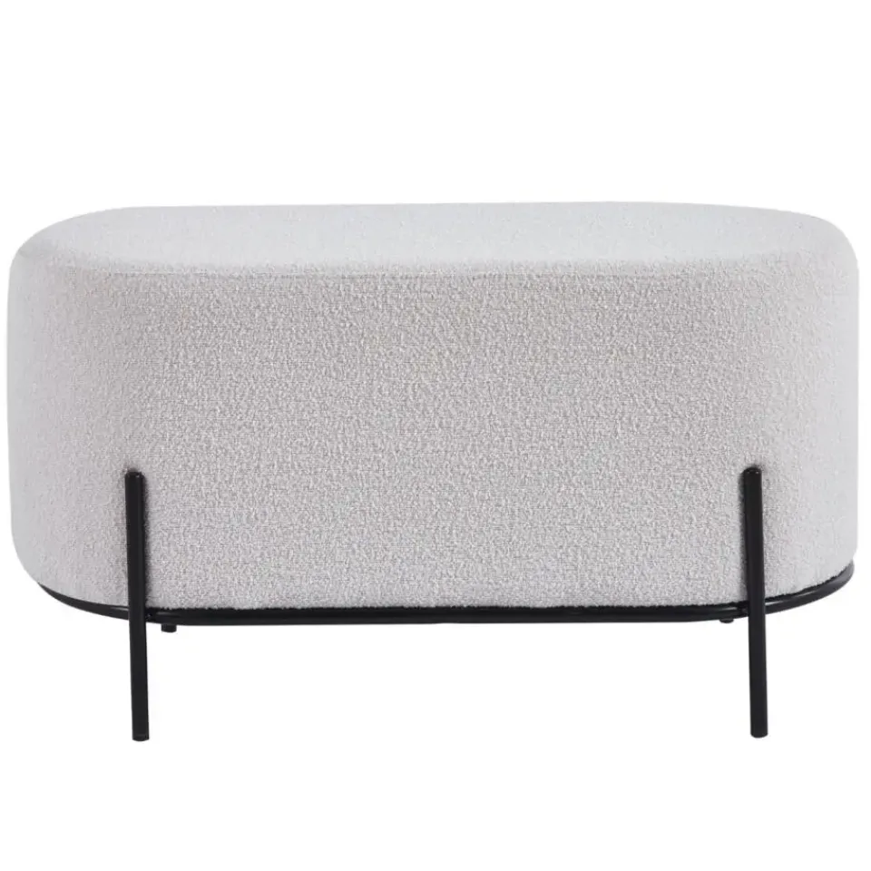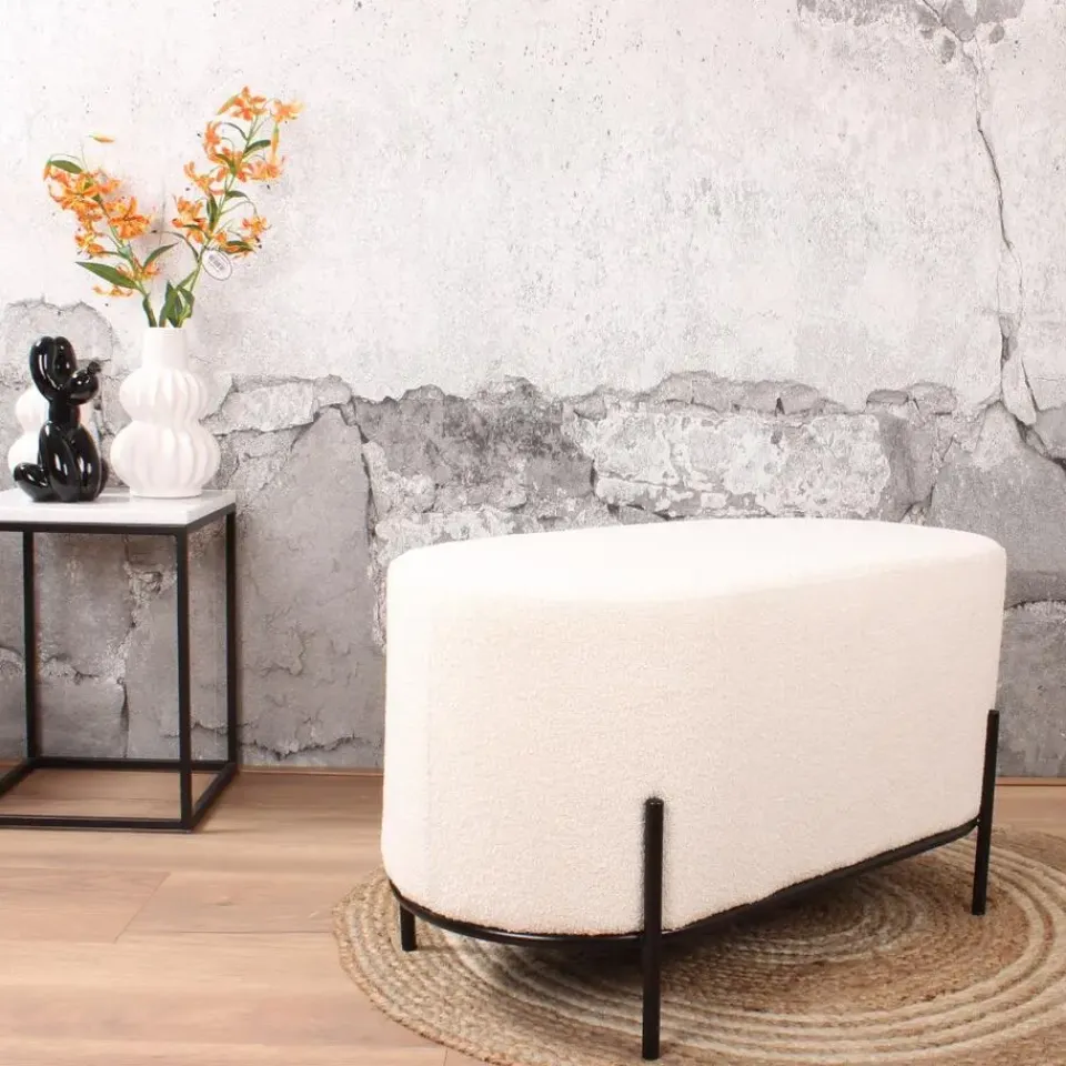 Deze trendy verschijning mag niet ontbreken in je interieur. Deze topper kun je werkelijk overal voor gebruiken; van zitplaats, voetenbank tot bijzettafel. Torben is een prachtige, royale ovalen poef van 80x40x42 cm. De robuuste basis geeft bepaalde stevigheid en maakt Torben een daadkrachtige verschijning. De 4 subtiele metalen poten uitgevoerd in zwart, lopen vanaf de grond langs de basis tot halverwege. Dit zorgt voor een simplistisch maar zeker indrukwekkend uiterlijk. Torben geeft een interieur sfeer en kan binnen heel veel verschillende woonstijlen worden geplaatst. Troy is verkrijgbaar in bouclé ivoor, beige en grijs. Voor ieder wat wils! Daarnaast is Torben in het klein te bestellen (35×38 cm).
