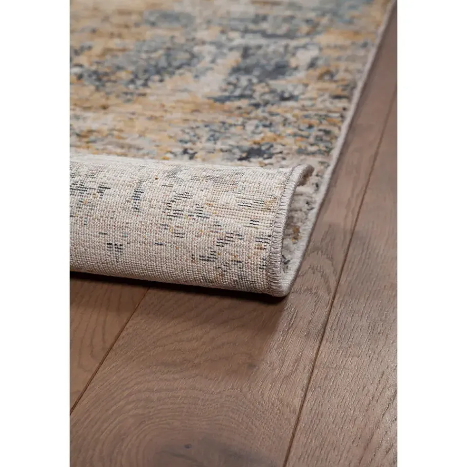 Dit vloerkleed, gemaakt van 100% polyester, is zowel zacht als duurzaam. De combinatie van blauwe en beige tinten creëert een prachtig, abstract patroon dat gemakkelijk te combineren is met verschillende interieurstijlen. De poolhoogte van 8 mm zorgt voor een heerlijk comfortabel gevoel onder de voeten.