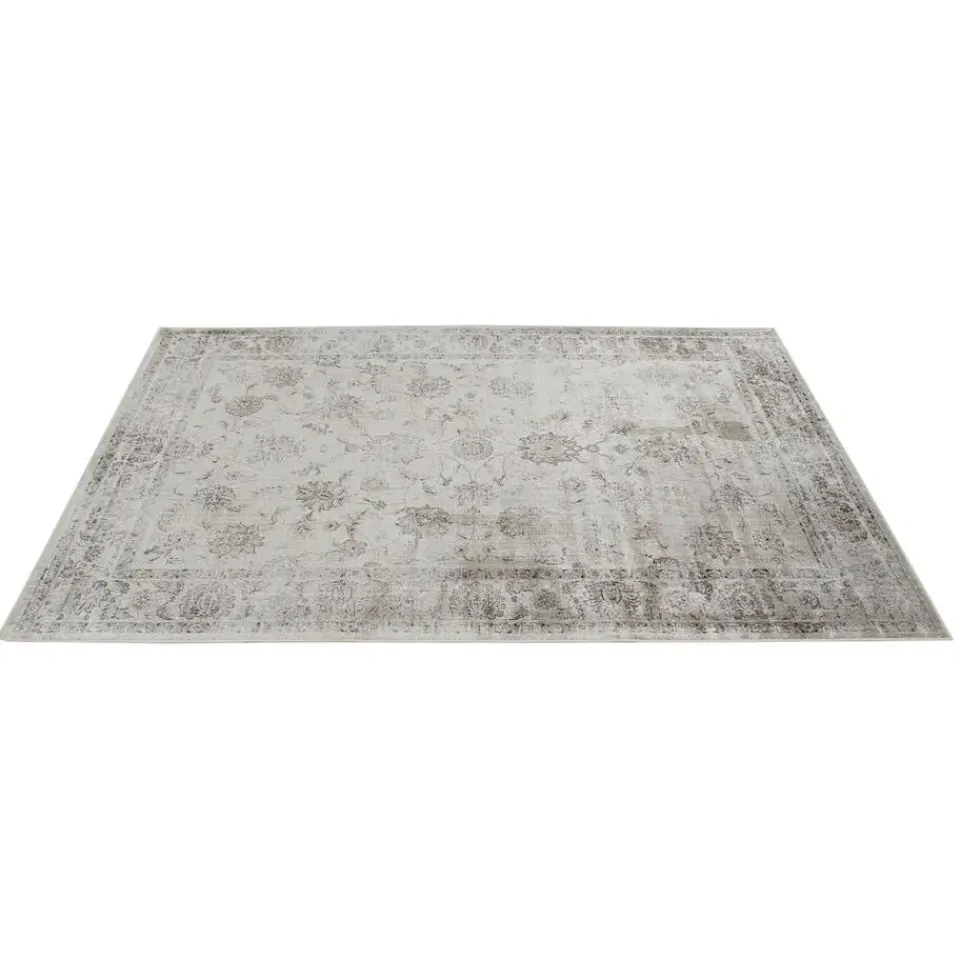 Prachtig machinaal gemaakt tapijt, niettemin geïnspireerd op oosterse stijlen: de scheiding tussen frame en gebied vereist dat de eerste helder en rijk gedecoreerd is, terwijl de laatste een diepere kleur heeft, die voldoet aan de look en wordt verrijkt door een “versleten” effect. De uiteinden worden gecompleteerd door elegante franjes. Fijn en delicaat, dit complement, rijk aan charme, voltooit zijn aantrekkelijkheid met helderheid en een zijdeachtige toets die wordt gegeven door viscose, waarvan het volledig is gerealiseerd