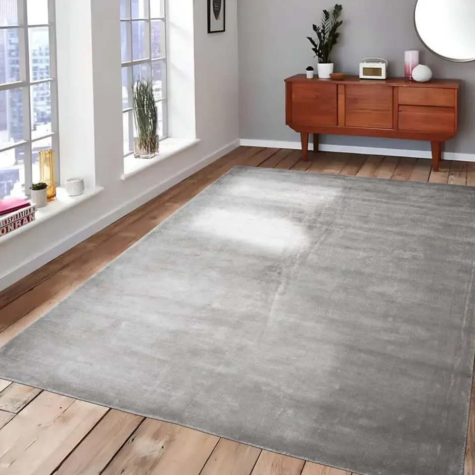 Gemaakt van 100% viscose, biedt dit kleed een subtiele glans en een zijdezachte textuur die een luxueuze uitstraling geeft aan uw ruimte. De stijlvolle grijze kleur is tijdloos en combineert moeiteloos met diverse interieurstijlen, van modern tot klassiek. Met een poolhoogte van 11 mm voelt dit kleed zacht en comfortabel aan onder de voeten, perfect voor woonkamers, slaapkamers of andere leefruimtes.