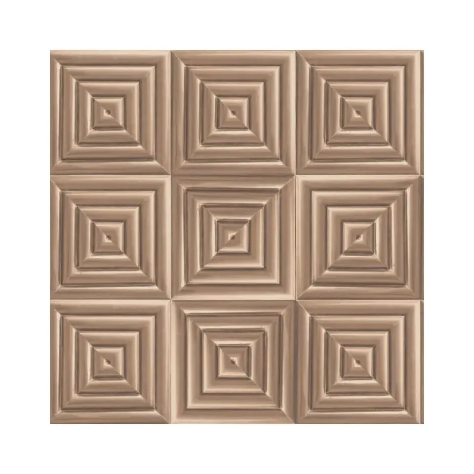 Behang met vierkanten, de diagonale lijnen en afwijkende kleurtinten zorgen voor een subtiel optisch bedrog effect.