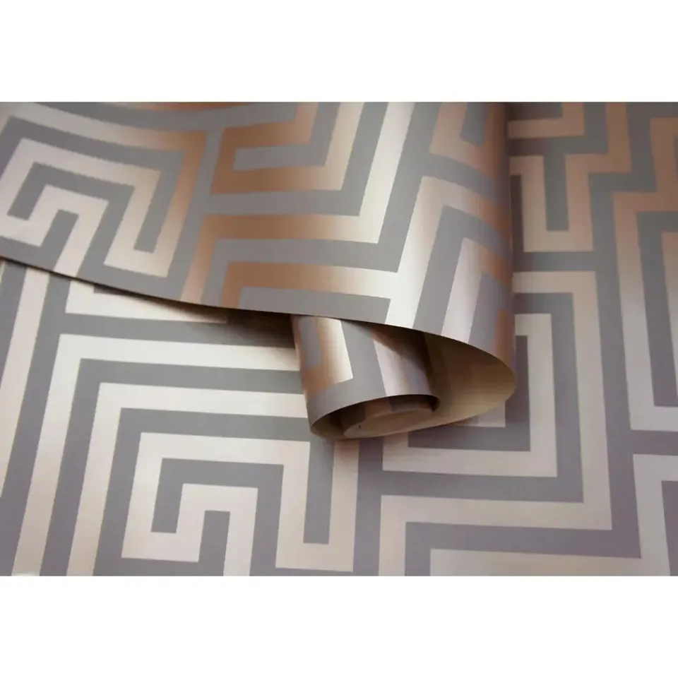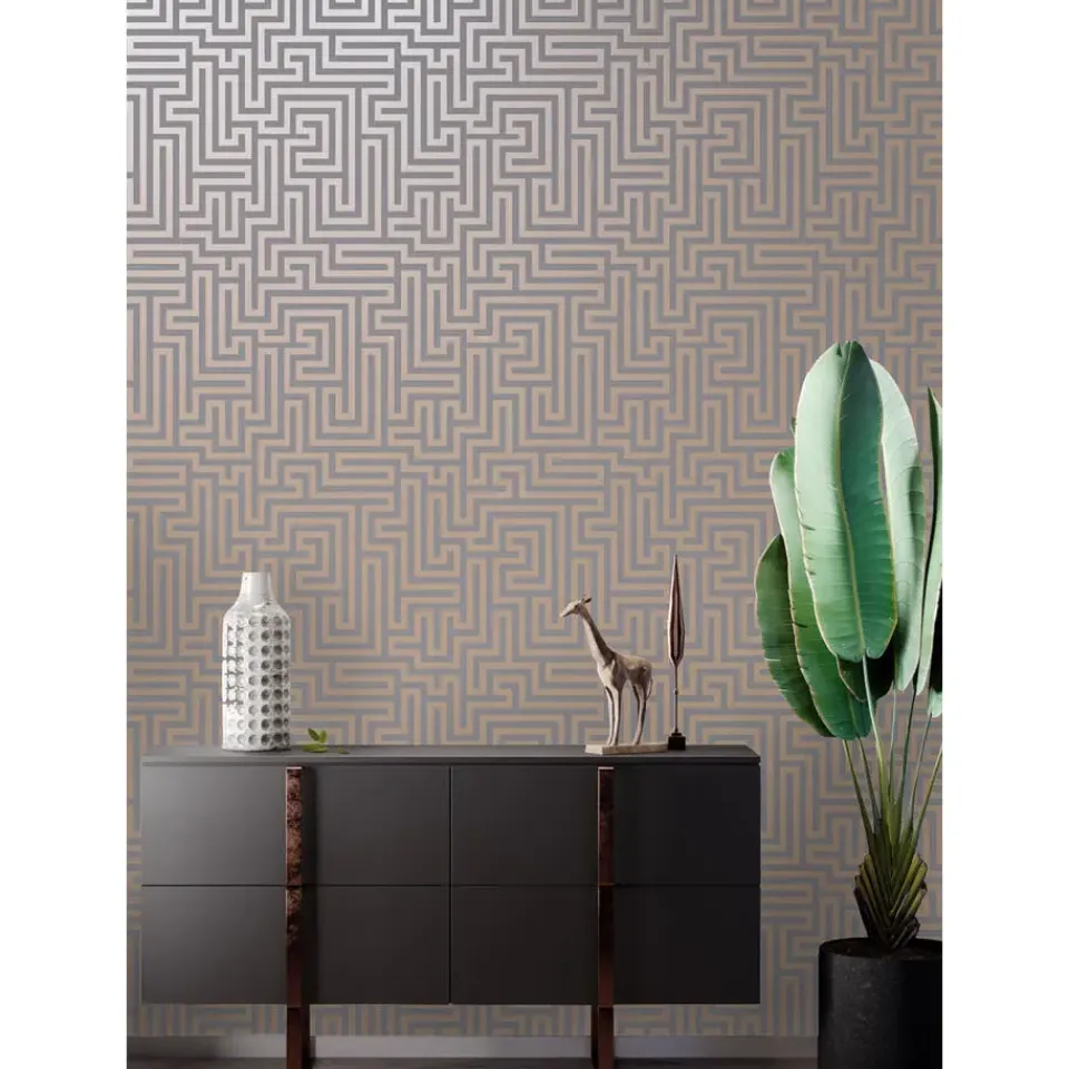 Met dit Dutch Wallcoverings papier behang uit de collectie Indulgence, ben je verzekerd van een mooi behang voor in je woonkamer of slaapkamer. Dit behang heeft een lijnenspel maze motief in de kleur(en) grey/rose/gold. Met het papier behang Indulgence Maze grey/rose gold creëer je een moderne stijl in je interieur. Dit behang heeft een afmeting van 10m x 53cm en heeft een aansluitend rapport van 53 cm.