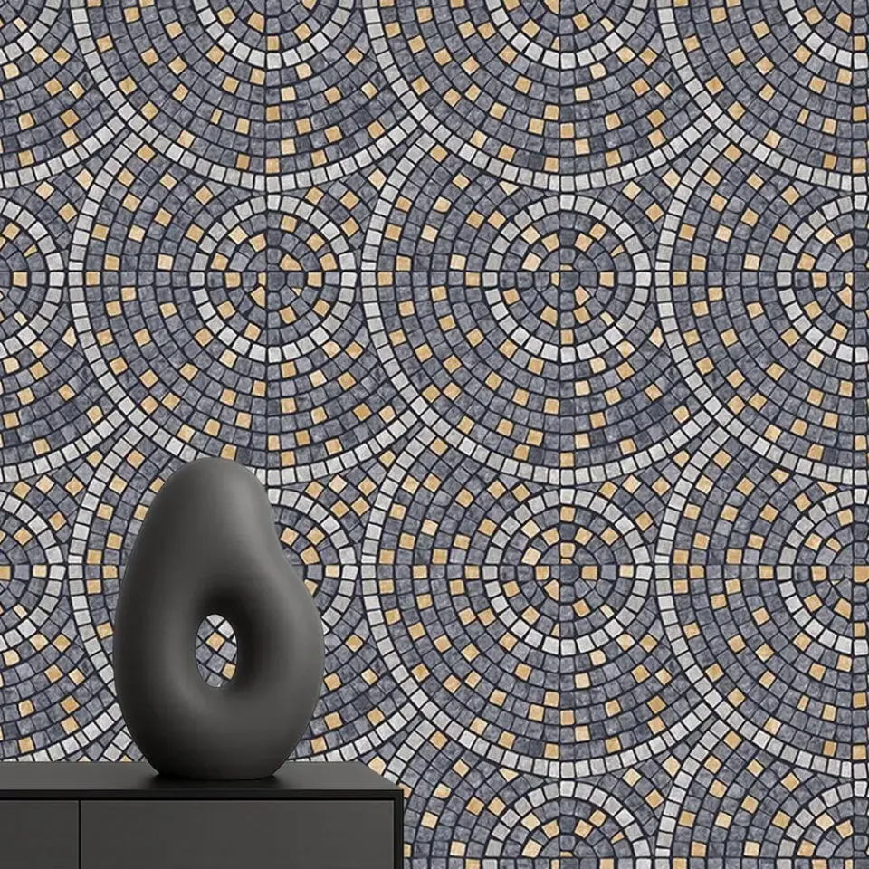 Het Artifice-vliesbehang met mozaïektegelmotief in donkergrijs en oker biedt een verfijnde en moderne uitstraling voor elke ruimte. De combinatie van diepe grijstinten en warme okerkleurige accenten creërt een dynamisch en visueel aantrekkelijk patroon dat perfect is voor accentmuren of als eyecatcher in een kamer. Dit behang brengt een gevoel van diepte en textuur, terwijl het toch subtiel blijft in zijn elegantie. Ideaal voor woonkamers, gangen of badkamers, het vliesbehang is eenvoudig aan te brengen en duurzaam. Het voegt een tijdloze stijl toe aan je interieur, met een vleugje luxe en verfijning.