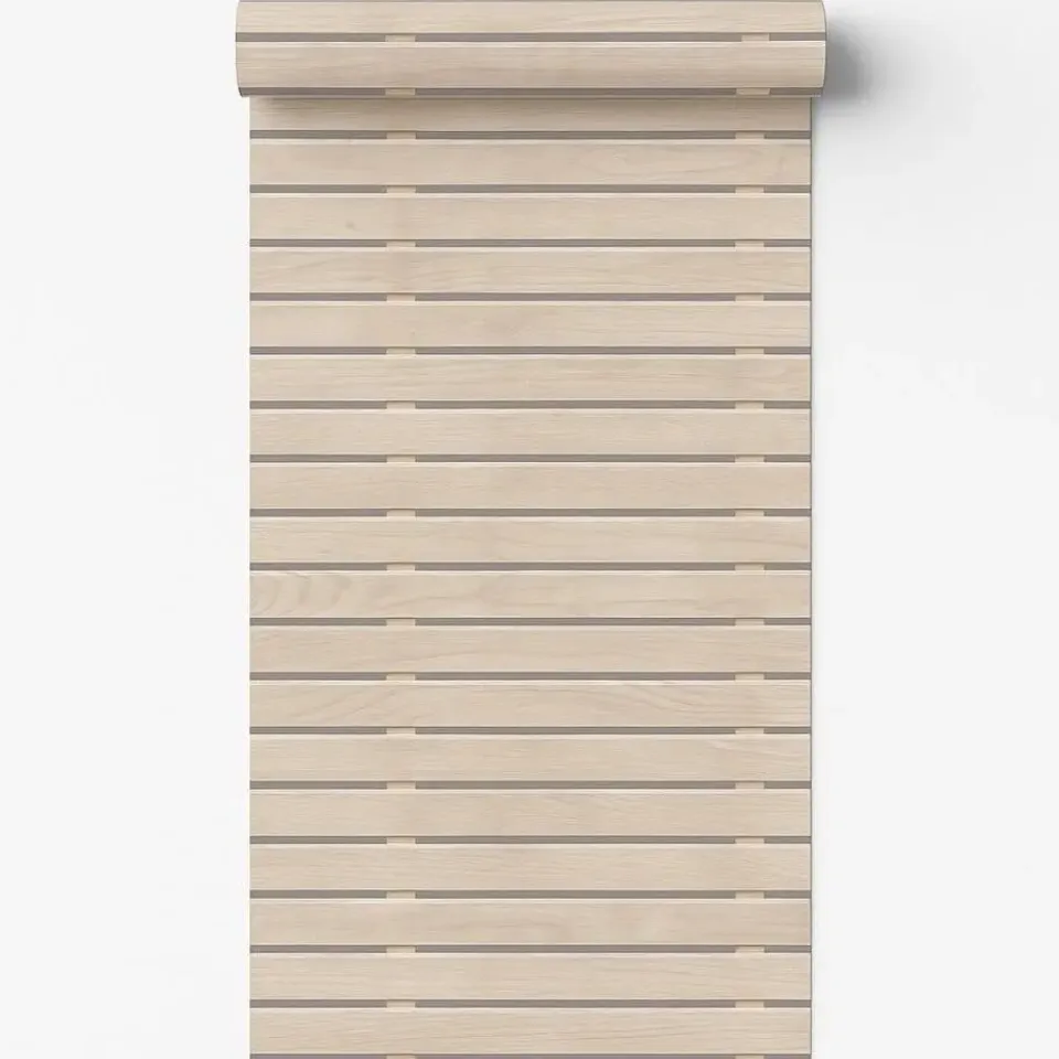 Het Artifice-vliesbehang met een beige plankenpatroon biedt een warme en natuurlijke uitstraling voor elke kamer. Dit behang creërt een horizontaal houtnerfeffect, waardoor een subtiele textuur en diepte aan uw muren worden toegevoegd. De lichte beigetinten passen perfect in zowel moderne als traditionele interieurs, en zorgen voor een rustgevende en uitnodigende sfeer. Gemaakt van hoogwaardig vliesmateriaal, is dit behang eenvoudig aan te brengen en te verwijderen, zonder lijmresten achter te laten. Ideaal voor woonkamers, slaapkamers of kantoorruimtes, brengt dit behang een vleugje natuurlijke elegantie in uw interieur.