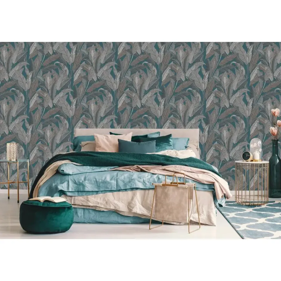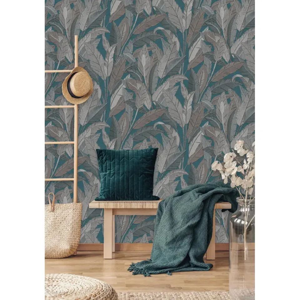 Renaissance Leaves Petrol Blue is een verfijnd vliesbehang met een weelderig botanisch bladmotief in intens petrolblauw en zachte grijs-bruine accenten. Het subtiele relïef van de bladeren Creëert optische diepte en een luxe, tactiele muurfinish. Het hoogwaardige non-woven materiaal is scheur- en kreukbestendig, eenvoudig toe te passen via de drop-out methode en droog te verwijderen zonder weken. Perfect voor een sfeervolle woonkamer, eigentijdse slaapkamer of stijlvol thuiskantoor. Combineer met warme houtaccenten, zachte linnen stoffen en matte metalen accessoires voor een chique, uitnodigende ambiance.