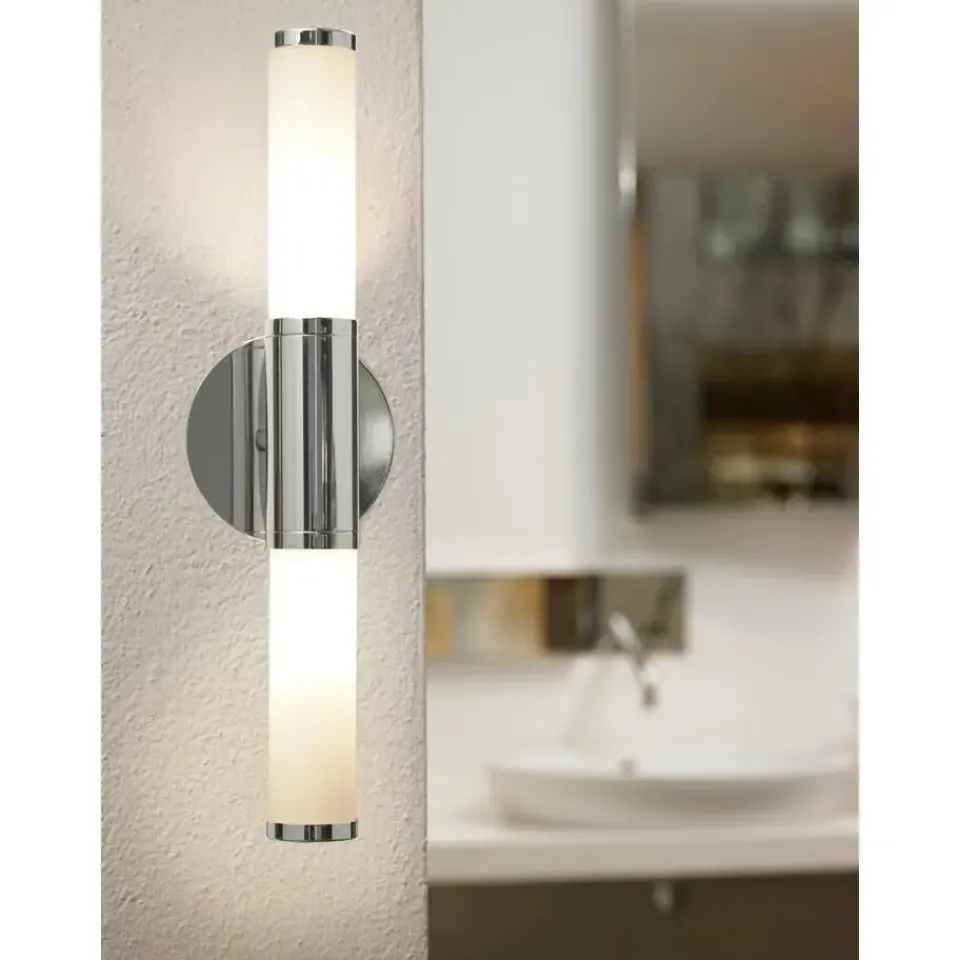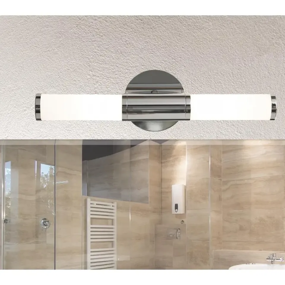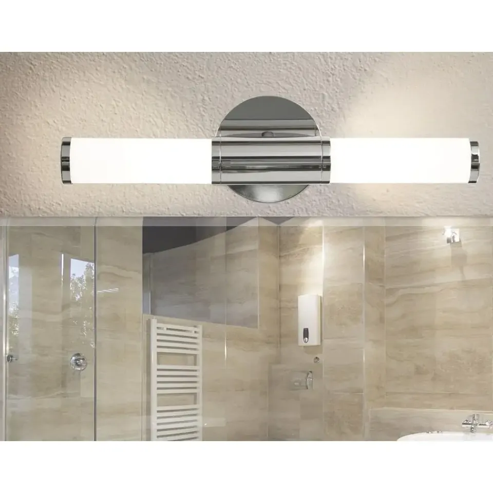 De Eglo Palmera Right is een stijlvolle badkamerlamp in een rechthoekige vorm. Ideaal voor bijvoorbeeld het bad. Deze lamp is gemakkelijk te bevestigen aan de wand. De behuizing is gemaakt van staal en de lampenkap is gemaakt van opaal glas. Deze combinatie resulteert in een design badkamerlamp. Binnen in de lamp bevinden zich twee lampjes. Deze lamp worden niet meegeleverd. De lamp straalt een egaal en helder licht uit en geeft een mooie sfeer in de badkamer. De Eglo Pamera Right is gemakkelijk te reinigen. De lamp is verkrijgbaar in zilver en in chroom.