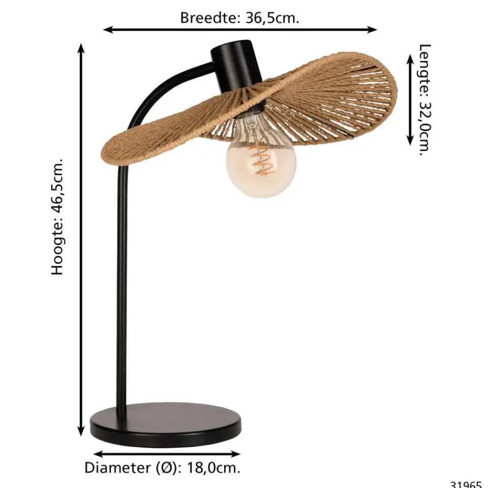 • Hippe tafellamp van H 46,5 x L 32 x B 36,5 cm