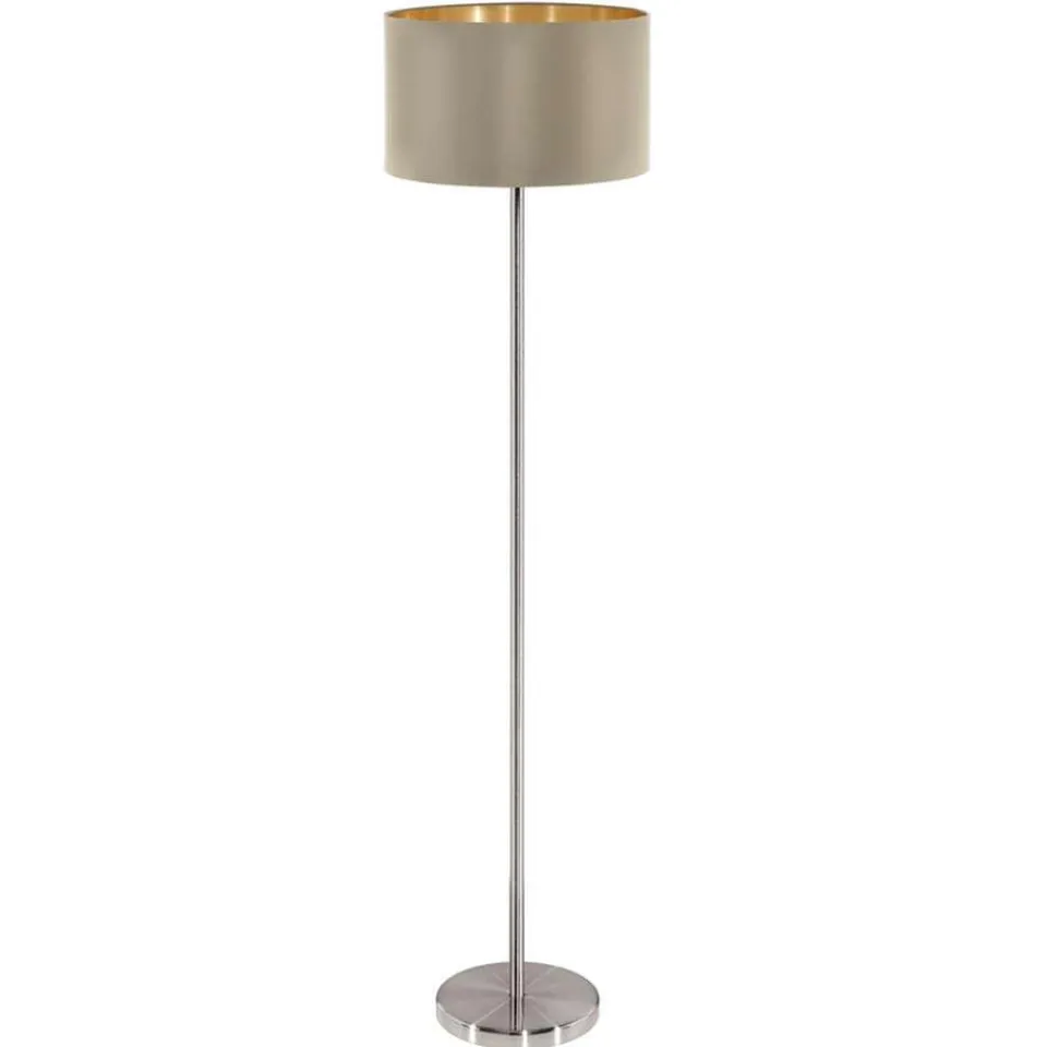 Vloerlamp Maserlo van EGLO is een stijlvolle lamp met kap in trendy kleur. De lamp is gemaakt van staal met textiel in de kleur taupe, goud. De lamp is geschikt voor 1 lichtbron met E27 fitting.