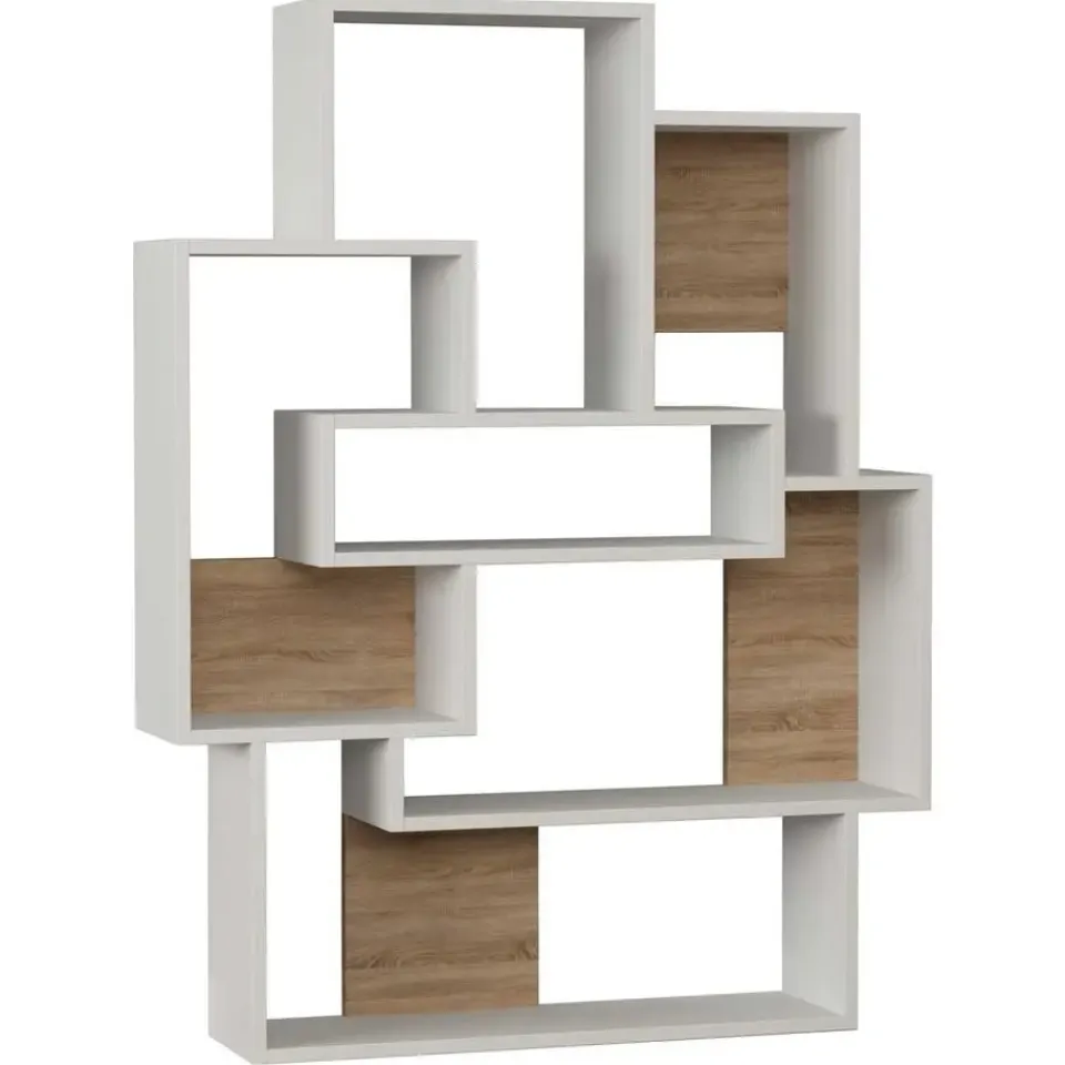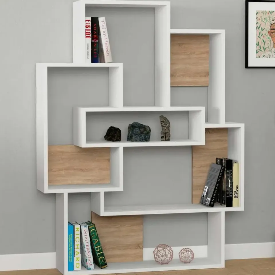 De combinatie van witte en eiken kleuren geeft deze boekenkast een moderne en elegante uitstraling die bij elke woonstijl past. Of je het nu in je woonkamer, slaapkamer of thuiskantoor plaatst, deze boekenkast zal zeker een blikvanger in je ruimte worden.