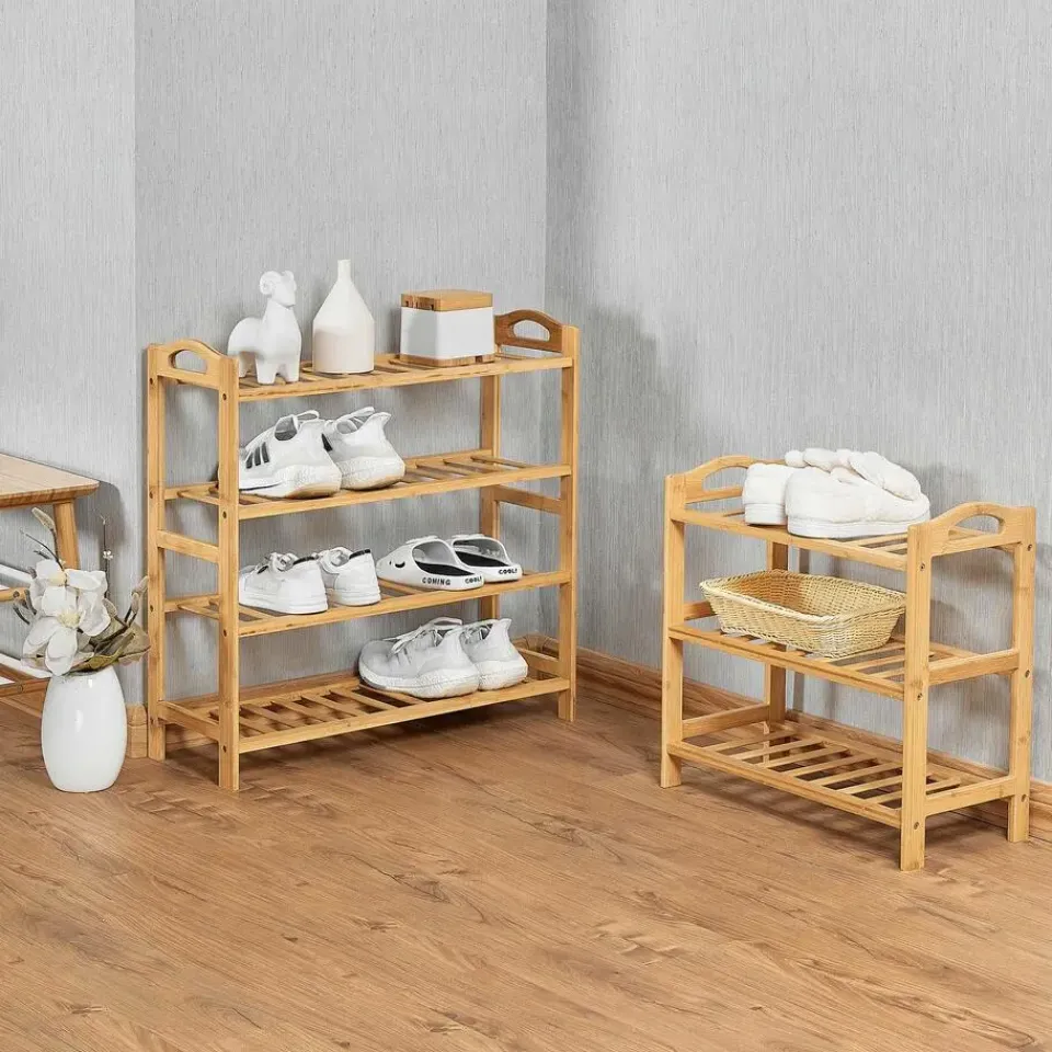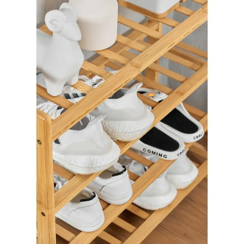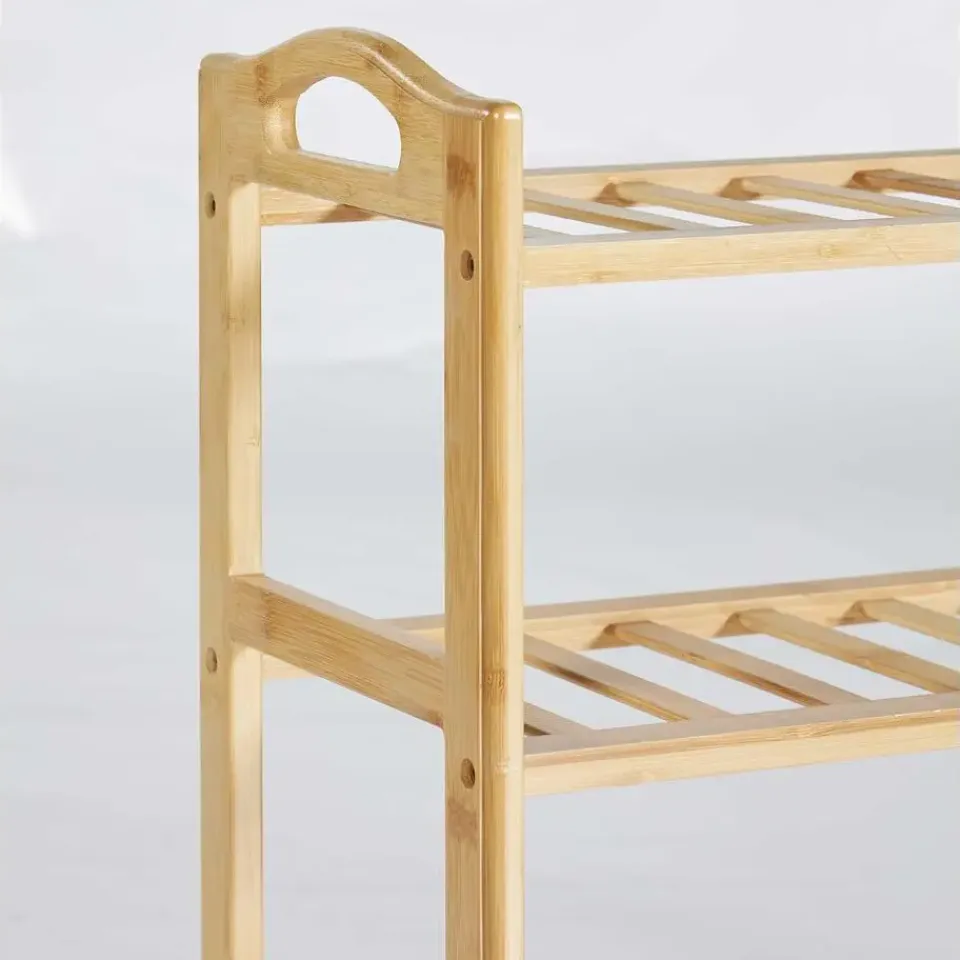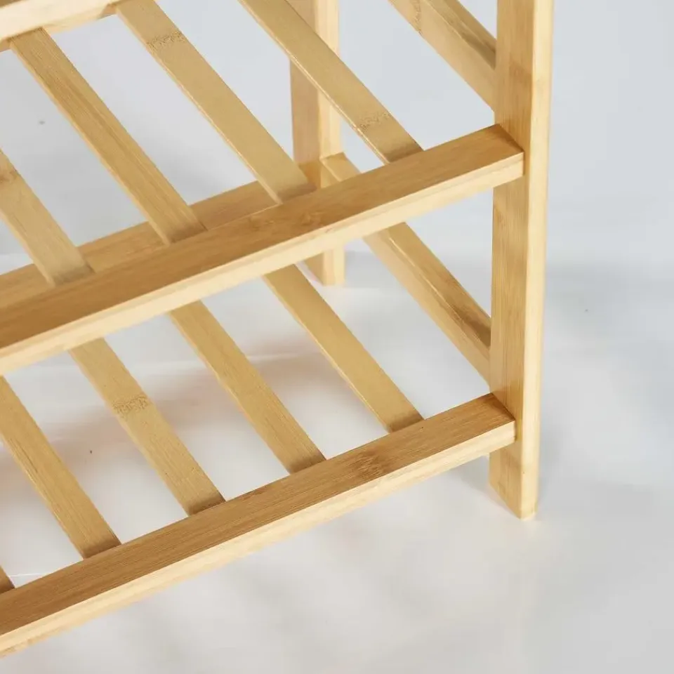 Breng natuurlijke warmte en functionaliteit in je interieur met het Celie bamboerek. Dit elegante rek is gemaakt van massief bamboehout, wat zorgt voor een stevige en duurzame constructie met een tijdloze uitstraling. Dankzij het open design met drie niveaus biedt dit rek voldoende opbergruimte voor diverse toepassingen. Gebruik het in de hal als schoenenrek, in de badkamer voor handdoeken en verzorgingsproducten, of in de woonkamer als decoratief opbergmeubel. Met zijn compacte formaat is dit rek ideaal voor kleinere ruimtes, terwijl de stevige constructie zorgt voor stabiliteit en een lange levensduur. Maak je interieur compleet met het Celie bamboerek – de perfecte mix van functionaliteit en elegantie!