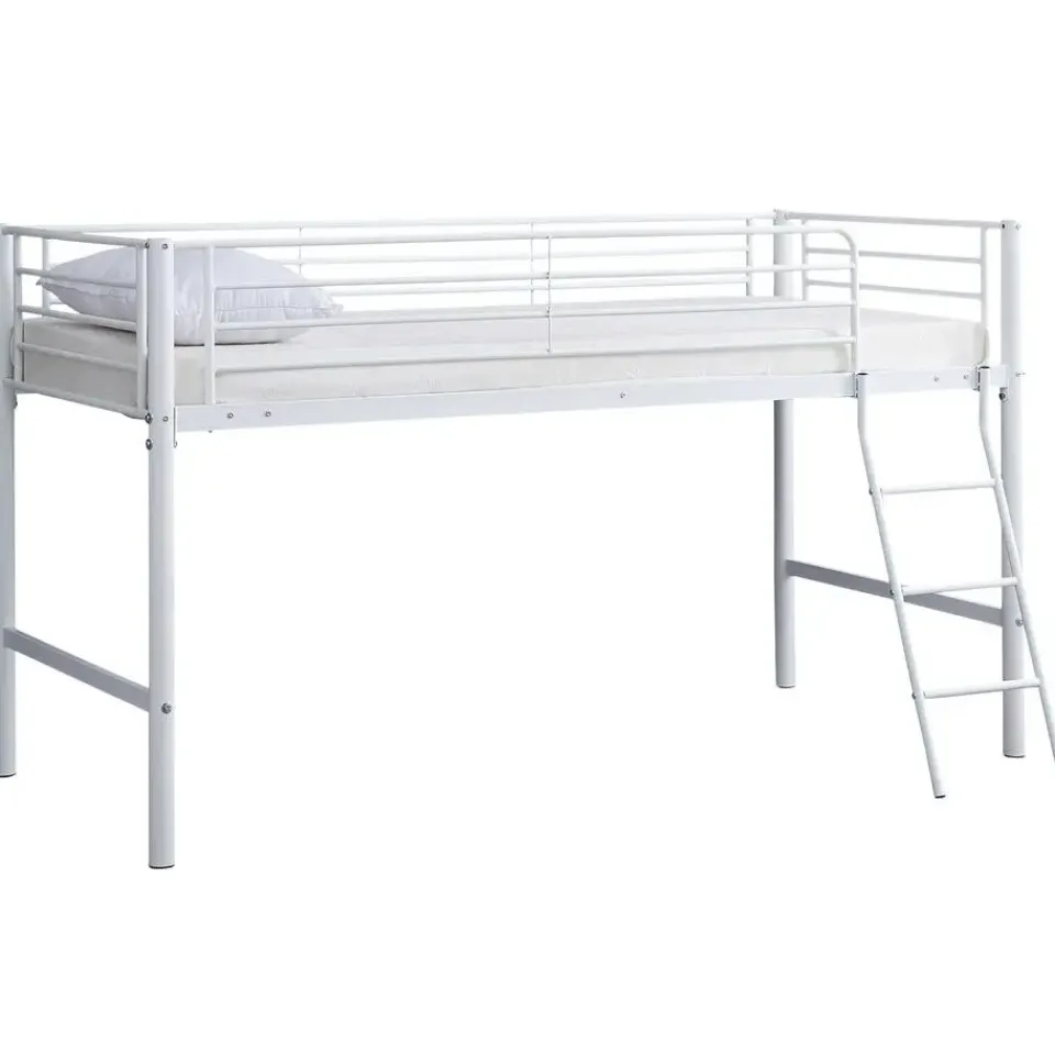 De metalen halfhoogslapers Julie combineren modern design met functionaliteit en zijn de perfecte oplossing voor kamers waar ruimtebesparing essentieel is. De metalen constructie zorgt voor stevigheid en stabiliteit en geeft de bedden een coole uitstraling. Het bed heeft een een ligoppervlak van 90x200cm en is te bereiken via een veilige ladder. Deze hoogslapers zijn geschikt voor zowel kinderen als volwassenen, waardoor ze perfect zijn voor bijvoorbeeld studentenkamers of tienerkamers. De ruimte onder het bed kan gebruikt worden als opbergruimte, of om een bureau te plaatsen. Of richt met wat kussens of poefs een plek in waar je tiener lekker kan “chillen”.