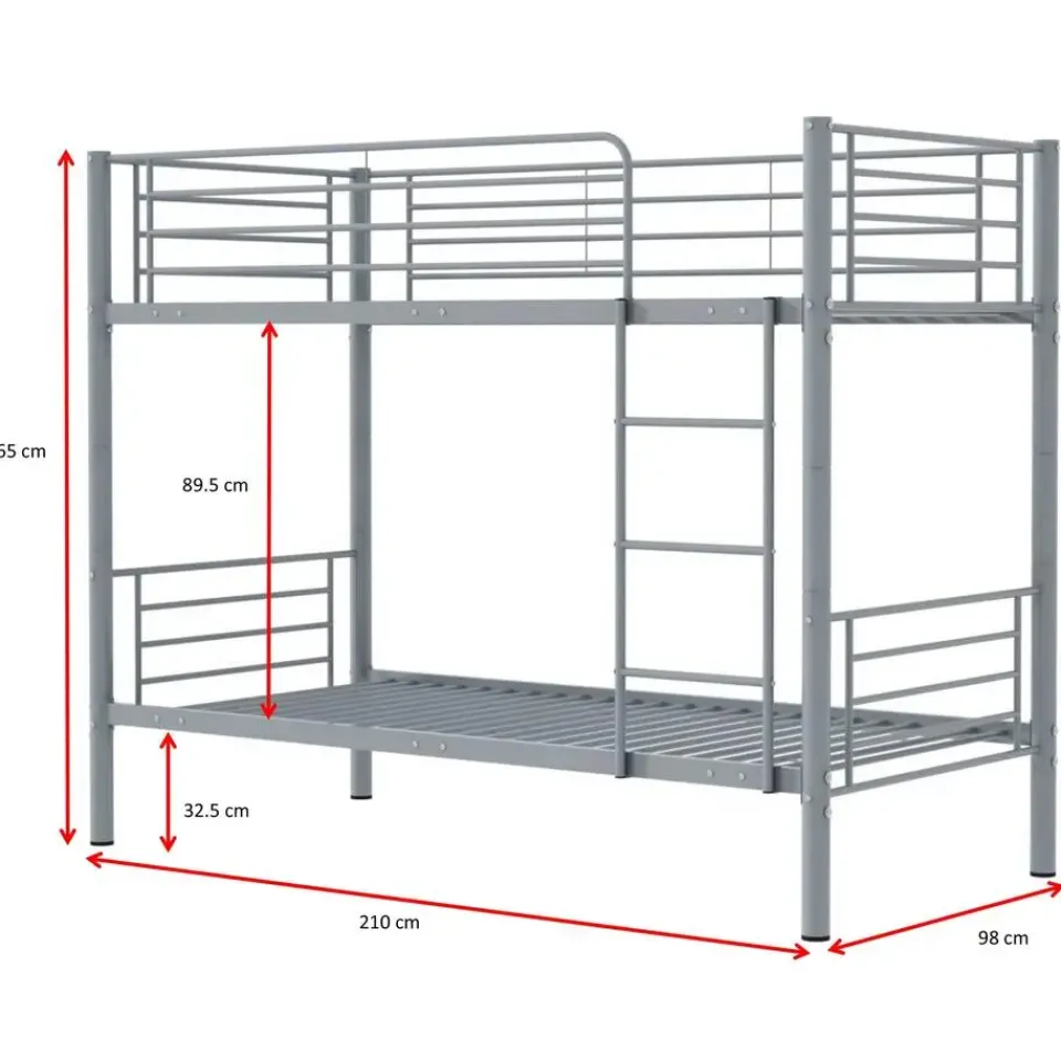 De metalen stapelbedden Dixie combineren modern design met functionaliteit en zijn de perfecte oplossing voor kamers waar ruimtebesparing essentieel is. De metalen constructie zorgt voor stevigheid en stabiliteit en geeft de bedden een coole uitstraling. De bedden hebben een ligoppervlak van 90x200cm. Het bovenste bed is te bereiken met een veilige ladder. Deze stapelbedden zijn geschikt voor zowel kinderen als volwassenen, waardoor ze perfect zijn voor gedeelde kamers of logeerkamers.