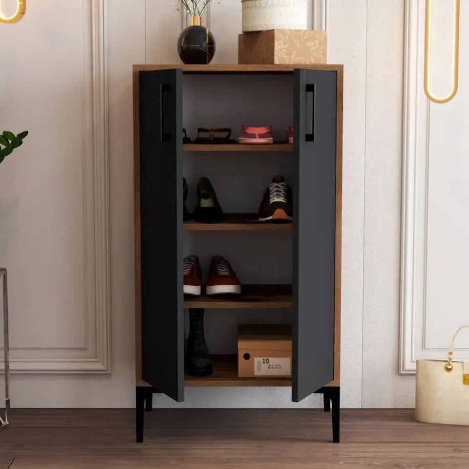 Deze schoenenkast is niet alleen een opbergoplossing, het is een statementstuk voor je huis. Het slanke ontwerp en het industriële concept tillen elke kamer naar een hoger niveau, terwijl je schoenen netjes opgeborgen blijven.