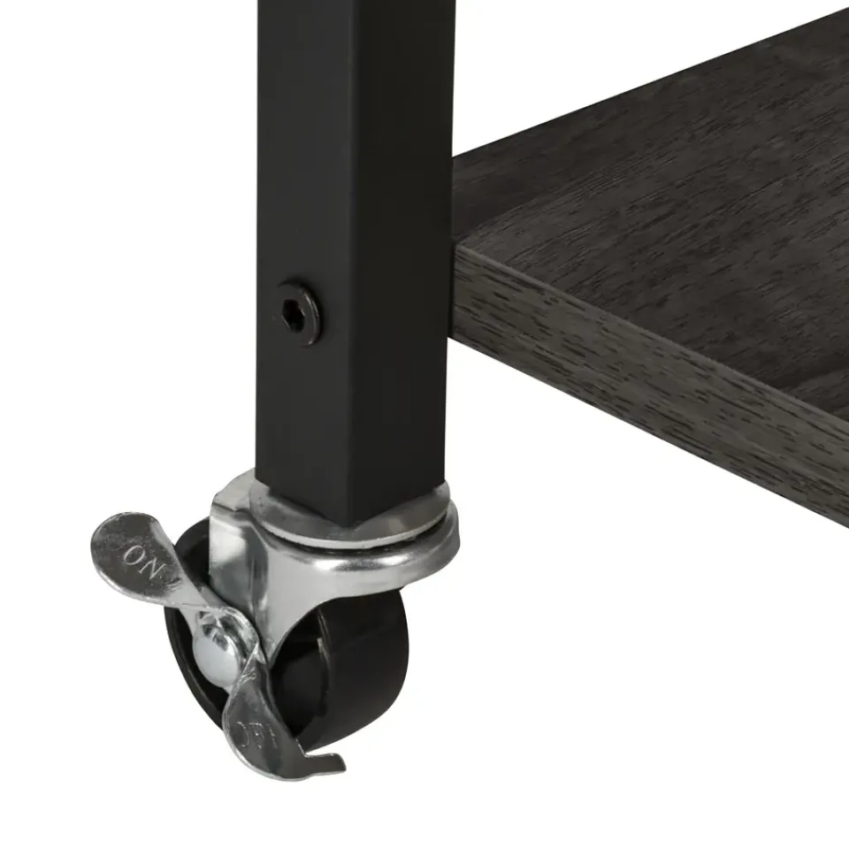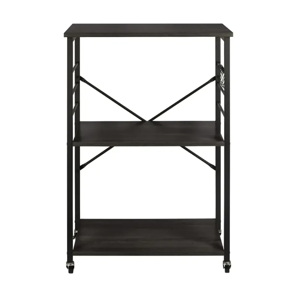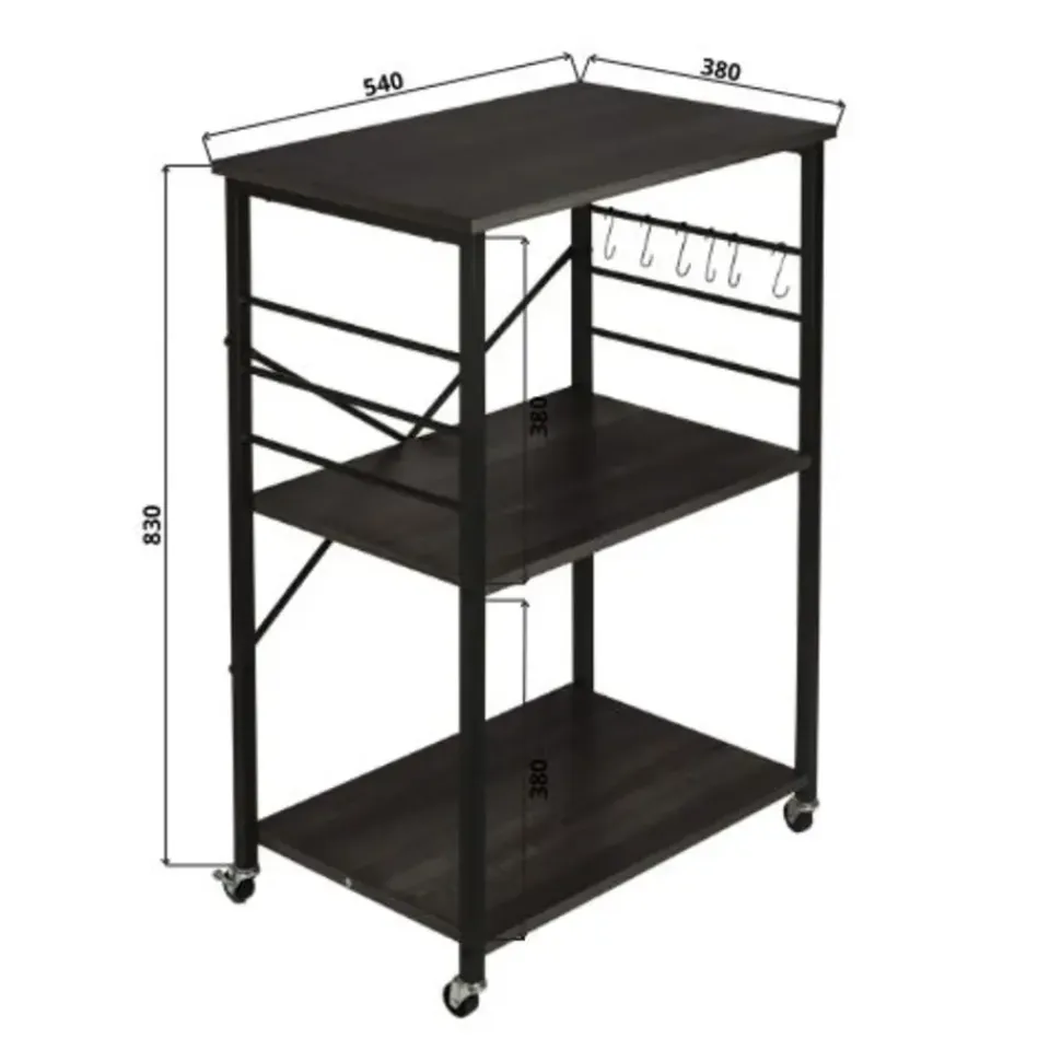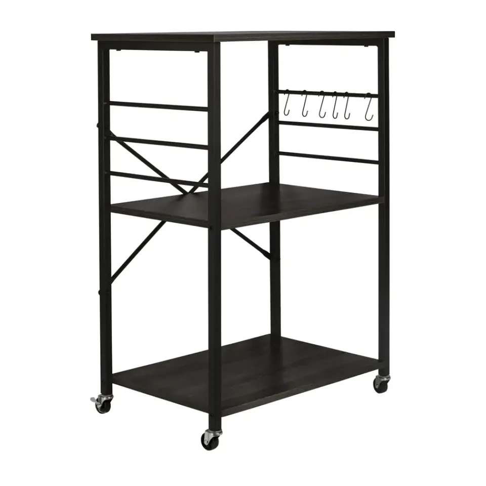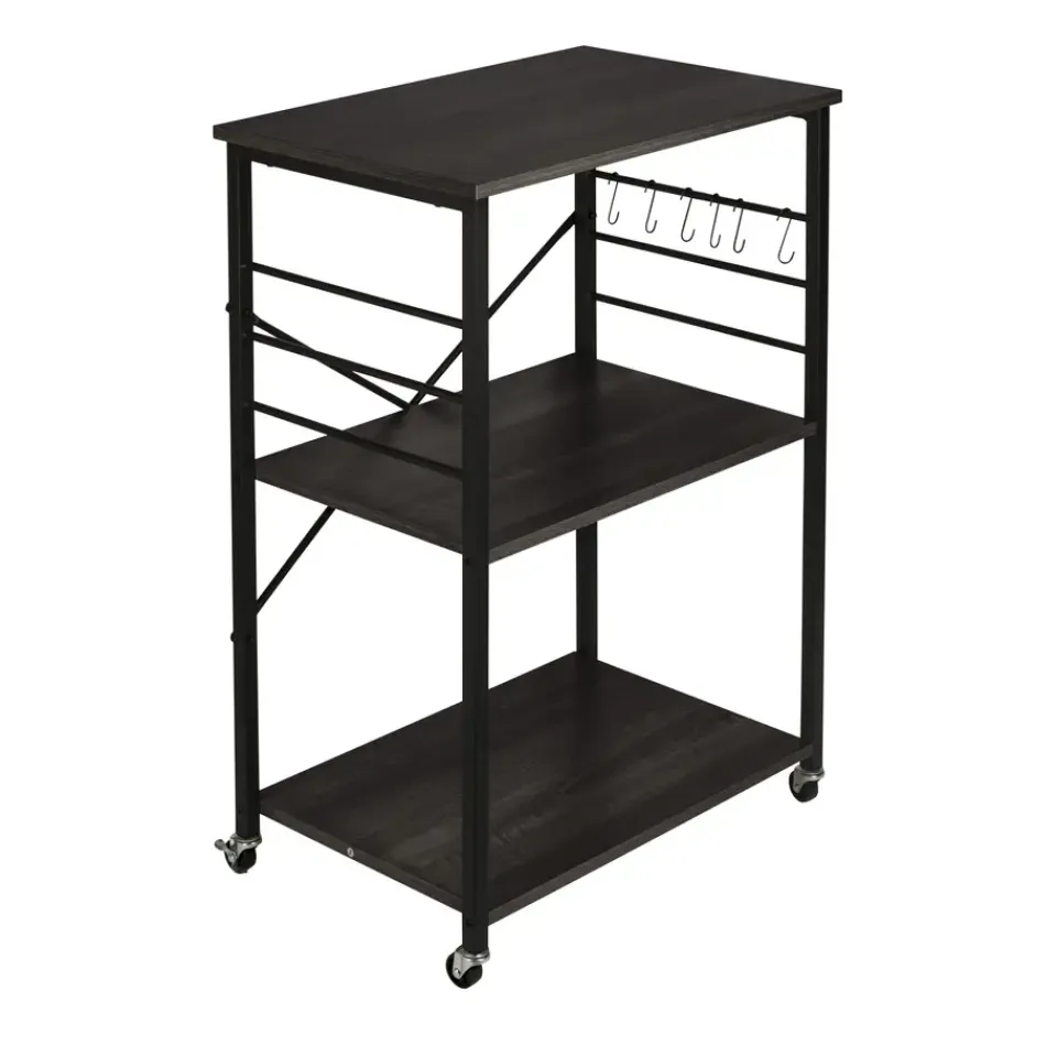 De ERRO keukentrolley is een handige en stijlvolle opbergoplossing voor elke keuken. Met drie ruime planken biedt deze serveerwagen voldoende opbergruimte voor keukengerei, ingrediënten en zelfs keukenapparaten. Dankzij de wieltjes met remfunctie verplaats je de trolley moeiteloos door de keuken, of gebruik je hem als vast keukenrek op wielen. De serveerwagen heeft een zwart metalen frame en stevige planken van spaanplaat.