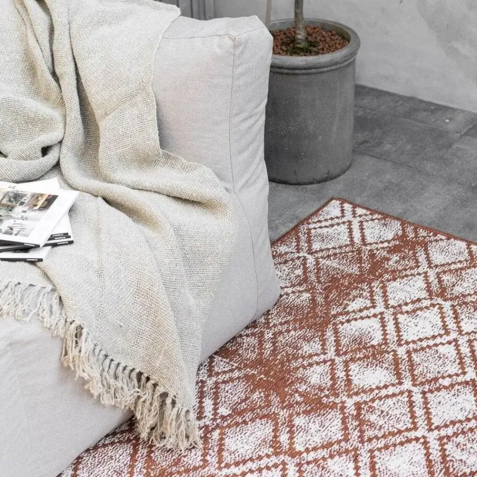 Geef je buitenruimte een frisse en moderne uitstraling met het Frost buitenkleed. Dit stijlvolle kleed heeft een modern patroon, waardoor het een eigentijdse en sfeervolle toevoeging is aan je terras, balkon of tuin. Verkrijgbaar in de kleuren grijs/wit en roest/wit, biedt het een subtiele balans tussen warmte en elegantie.