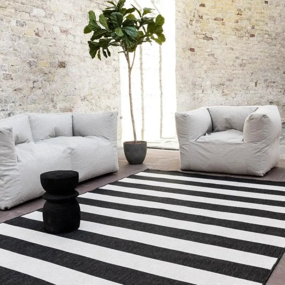 Breng een eigentijdse flair naar je buitenruimte met het Stripes buitenkleed. Dit stijlvolle kleed is voorzien van een klassiek streepjespatroon, waardoor het een moderne en speelse uitstraling krijgt. Verkrijgbaar in de kleuren grijs/wit, roest/wit en zwart/wit, past het perfect in verschillende buitenomgevingen, van minimalistisch tot juist wat warmer.