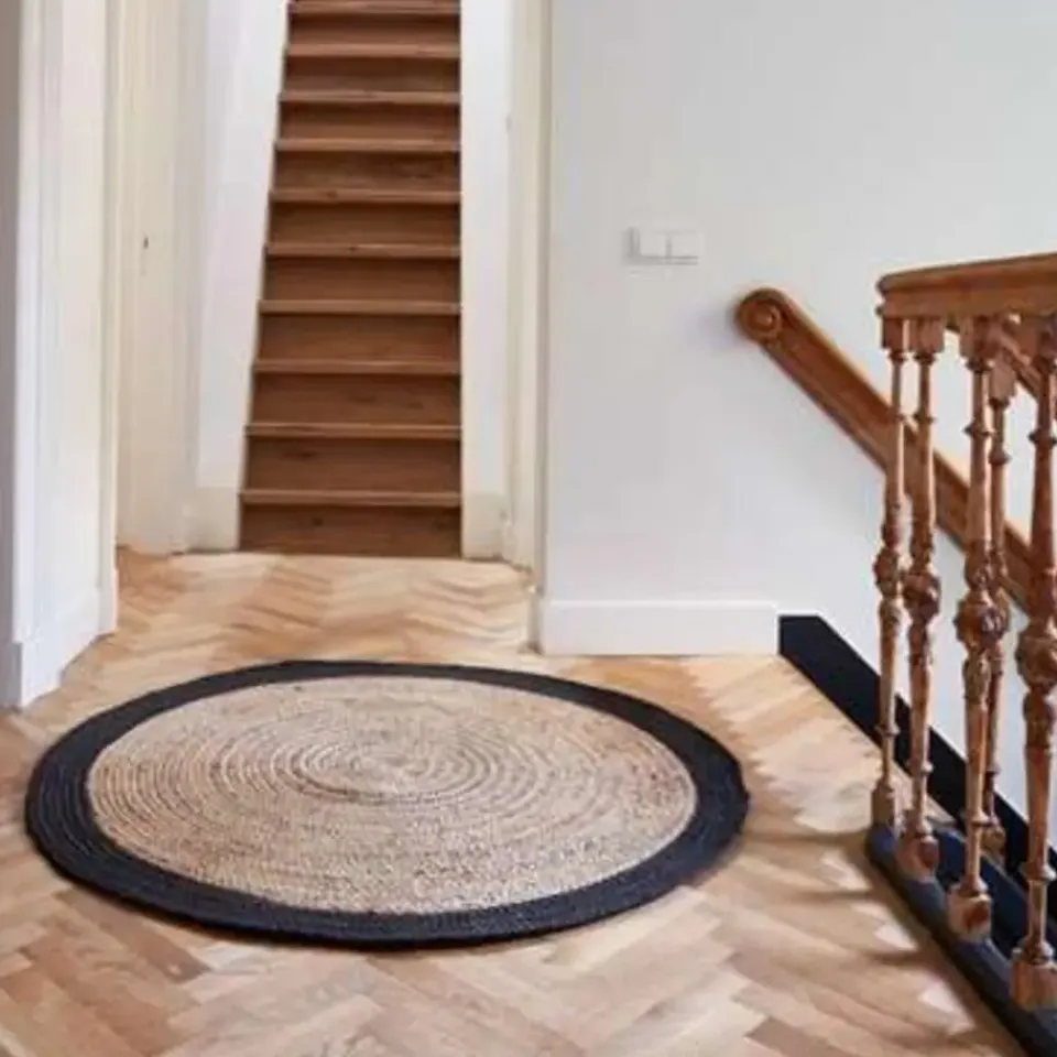 Ronde vloerkleden vallen op, zo ook dit jute vloerkleed. Dit ronde Jute vloerkleden heeft een hoogwaardige kwaliteit. De structuur van dit jute kleed zorgt voor een speelse look. Een rond kleed is een echte eye-catcher in elke ruimte. De kleurvan ditronde vloerkleed is naturel met een antraciet rand en kan daardoor gemakkelijk gecombineerd worden met diverse kleuren en stijlen. Leg een rond tapijt bijvoorbeeld in je woonkamer, slaapkamer, eetkamer of hal.