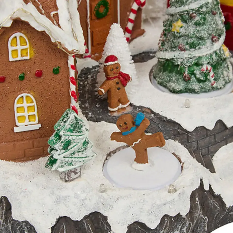Stap in een winterwonderland met deze sfeervolle peperkoek dorpje! Dit charmante kerstdorp tafereel brengt direct een knusse en feestelijke sfeer in huis. Met warme LED-verlichting, vrolijke muziek en bewegende details is het een magische toevoeging aan je kerstdecoratie.