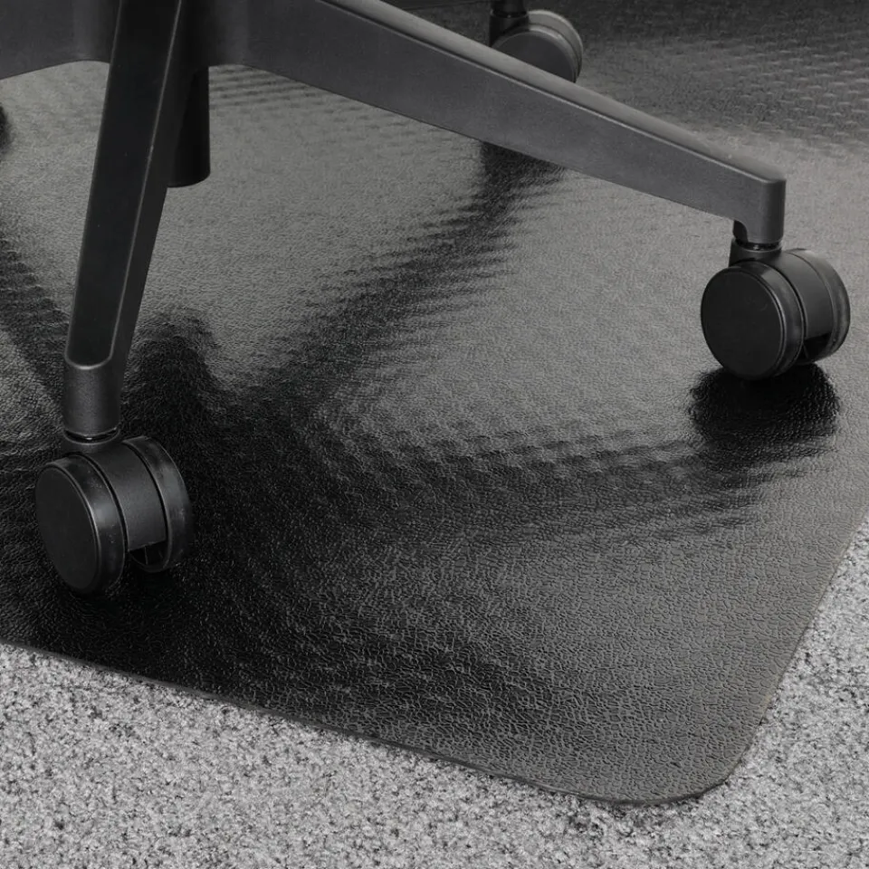 Deze zwarte bureaustoelmat voor tapijt geeft je werkruimte een professionele uitstraling. Dankzij de zorgvuldig gekozen samenstelling heeft de vloerbeschermer een lange levensduur. De vloermat zal niet scheuren, afbladderen, breken of uitdrogen zolang deze onder normale omstandigheden gebruikt wordt.