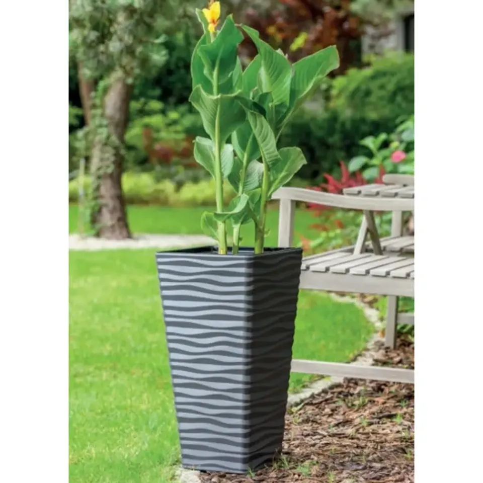Plantenpot/bloempot uit de Sahara Dunes Slim serie met een stijlvol golvend patroon aan de buitenzijde. De binnenpot is uitneembaar en voorzien van handige handgrepen. Deze bloempotten zijn gemaakt van stevig kunststof in de kleur antraciet. Deze prachtige bloempot met uniek design is een waar statement aan je tuin, terras, serre of huis. De bloempot is voor buiten en binnen gebruik geschikt. De kunststof constructie van de plantenpot maakt dat de pot licht van gewicht is, waardoor hij makkelijk is te verplaatsten. Afmetingen: D40 x H75 cm. Dankzij de robuuste kunststof kwaliteit zijn deze bestand tegen vorst.