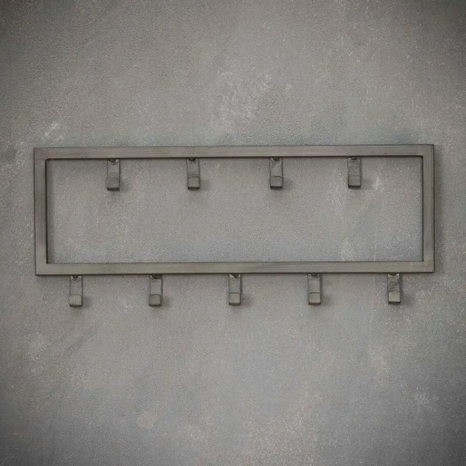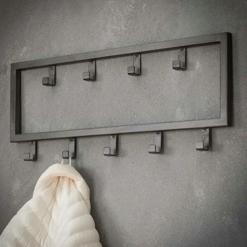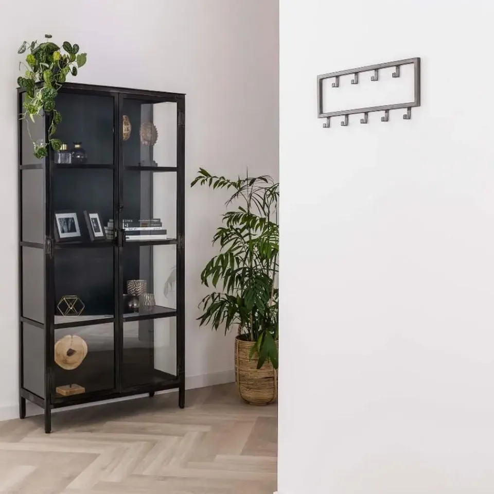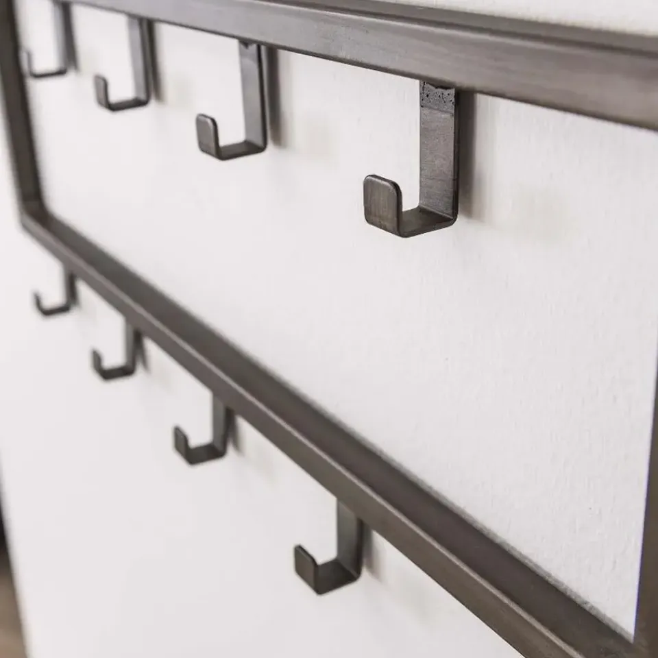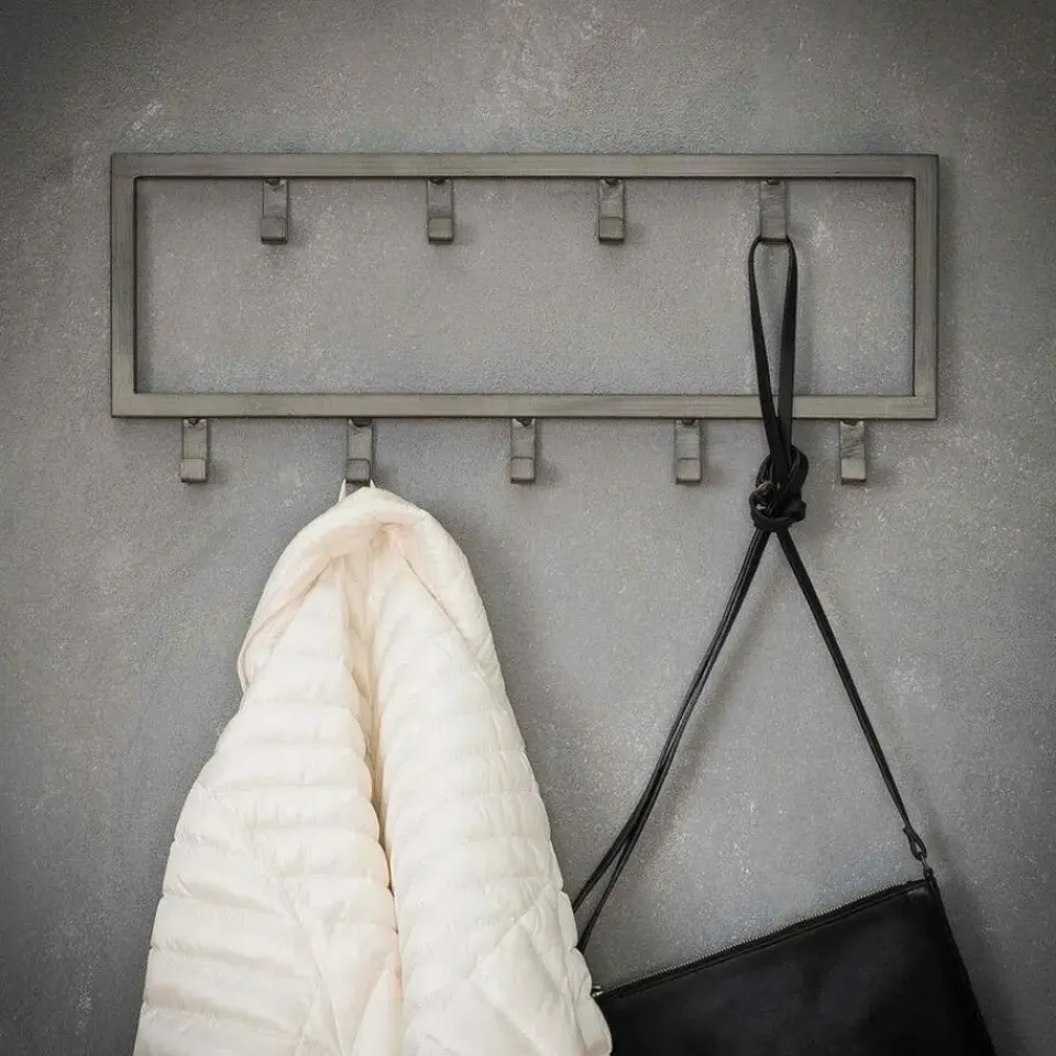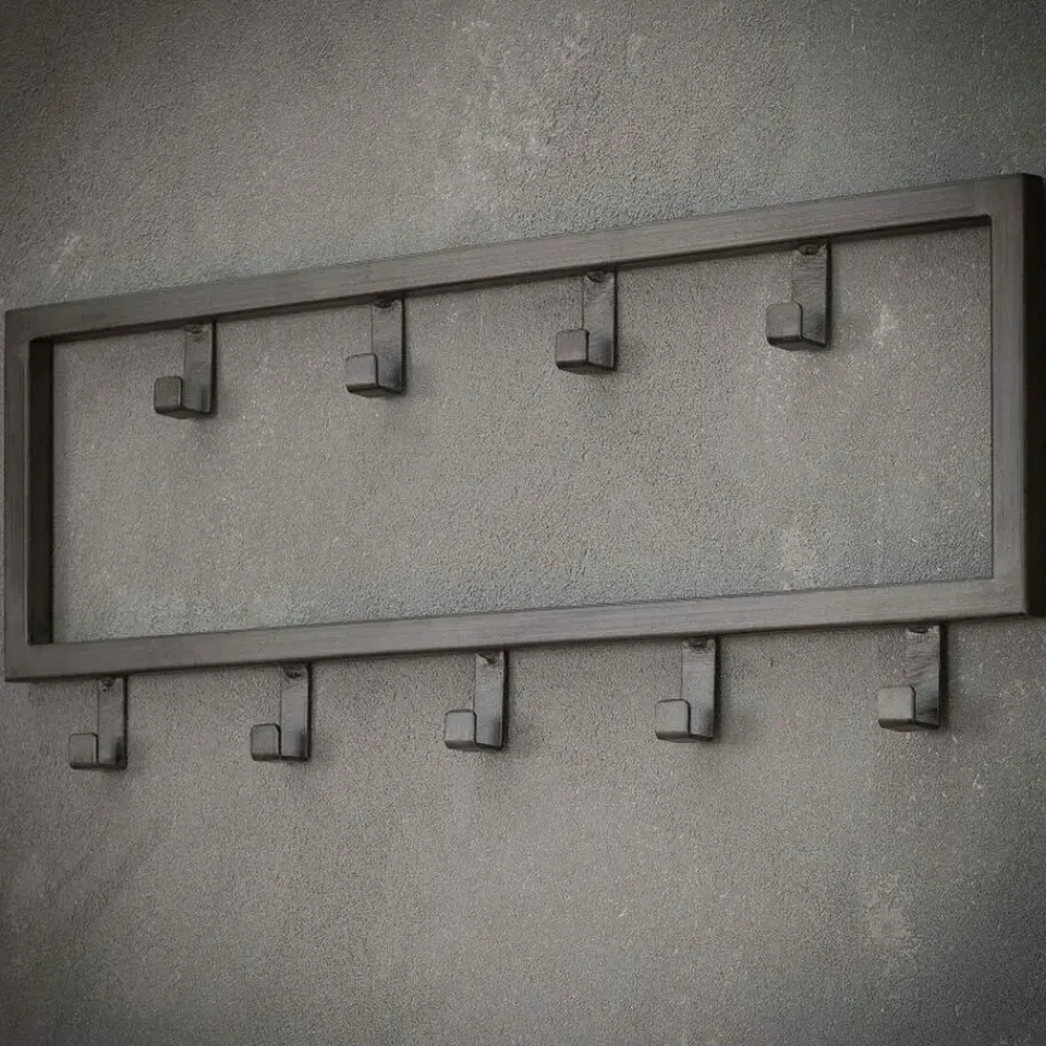De kapstok industrieel 9 haken – 50 cm past dankzij zijn ontwerp perfect binnen een industriële, stoere of moderne inrichting. Hij is in zijn geheel gemaakt van gepoedercoat staal en heeft een zwarte afwerking gekregen. Deze variant bestaat uit 9 haakjes die verdeeld zijn over twee rijen. Hierdoor is er genoeg ruimte voor verschillende jassen, sjaals en andere accessoires. De kapstok is voorzien van twee oogjes aan de achterkant om de kapstok mee te bevestigingen. Het bevestigingsmateriaal wordt niet meegeleverd omdat verschillende wandmaterialen vragen om verschillende soorten wandbeslag. Kapstok industrieel 9 haken is licht van gewicht en daardoor gemakkelijk te bevestigen en geschikt voor diverse wandsoorten.