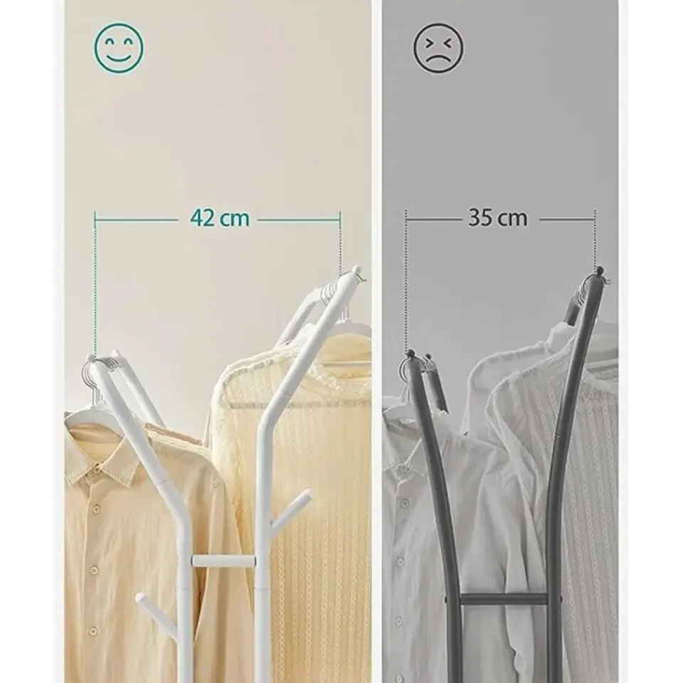 [Veelzijdige opslag] Met een hoge rail en een lage rail voor het ophangen van kleding van verschillende lengtes, haken aan beide zijden voor tassen en hoeden, en een onderste plank voor dozen en schoenen, houdt dit kledingrek al je benodigdheden op één plek [Sneldrogend en gemakkelijk toegankelijk] De afstand van 42 cm tussen 2 kledingophangrails zorgt ervoor dat de lucht gemakkelijk doorstroomt, wat een snelle droging bevordert. Het biedt voldoende ophangruimte om overvolle, rommelige kleding te voorkomen, waardoor ze gemakkelijker toegankelijk zijn [Gemakkelijk te verplaatsen en te vergrendelen] Schuif de dubbele kledingroede moeiteloos naar elke kamer in huis dankzij de 4 zwenkwielen. 2 van de wielen zijn vergrendelbaar, waardoor je het rek ook op één plek kunt bewaren [Stabiel en sterk] Met bouten die de 25,4 mm dikke stalen buizen bevestigen, heeft dit kledingrek een stabiel frame dat tot 100 kg kan dragen. Elke rail heeft een max. statisch draagvermogen van 30 kg; elke haak tot 5 kg; en de onderste plank kan maximaal 20 kg dragen [Eenvoudige montage] De eenvoudige structuur, de genummerde onderdelen en de geïllustreerde, gemakkelijk leesbare instructies maken het opzetten van dit robuuste kledingrek een fluitje van een cent.